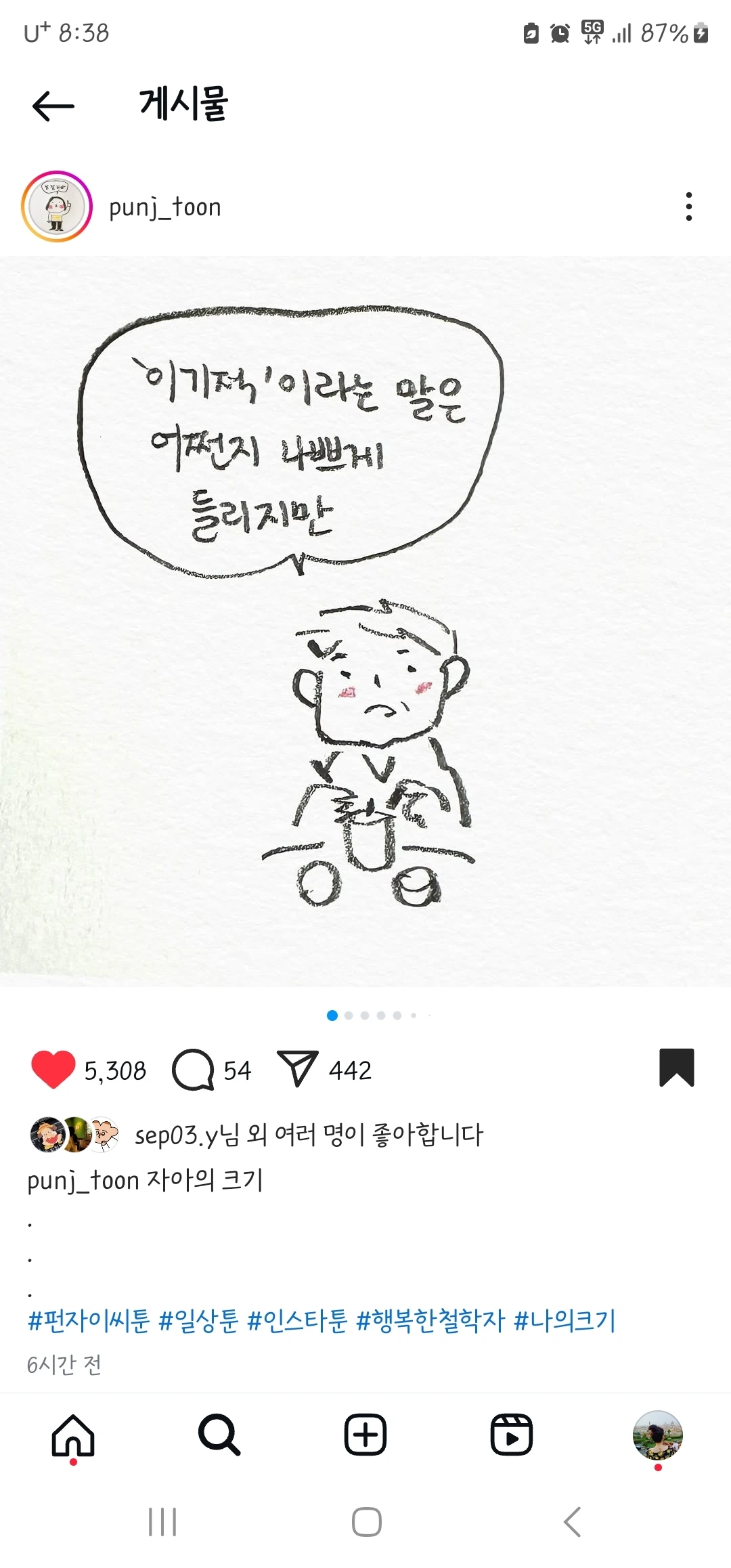 툰 내용처럼 반드시 긍정적인 것만은 아니라고 생각하지만, 어쨌거나 지난날 스스로도 잘 이해가 안 가던 내 사고방식과 행동양식들에 대해 많은 부분 이해할 수 있게 된 것 같다.