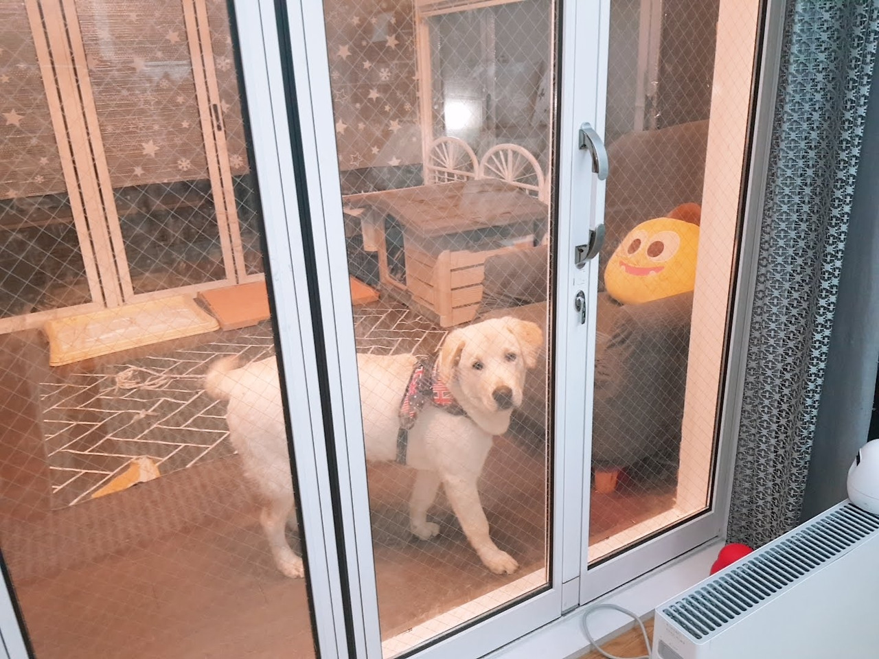 하루하루 오늘은 어떤 사고를 쳤을까 상상하며 퇴근을 하게 해 줍니다. 여러 사건을 계기로 거실에 두는 건 무리가 있겠다고 생각하고 이사를 하기로 결정하였습니다. 이사는 거실옆에 붙어있는 썬룸입니다.