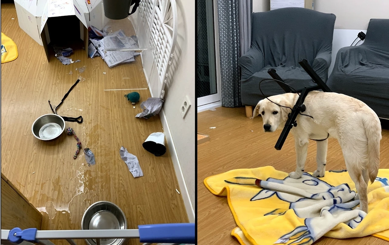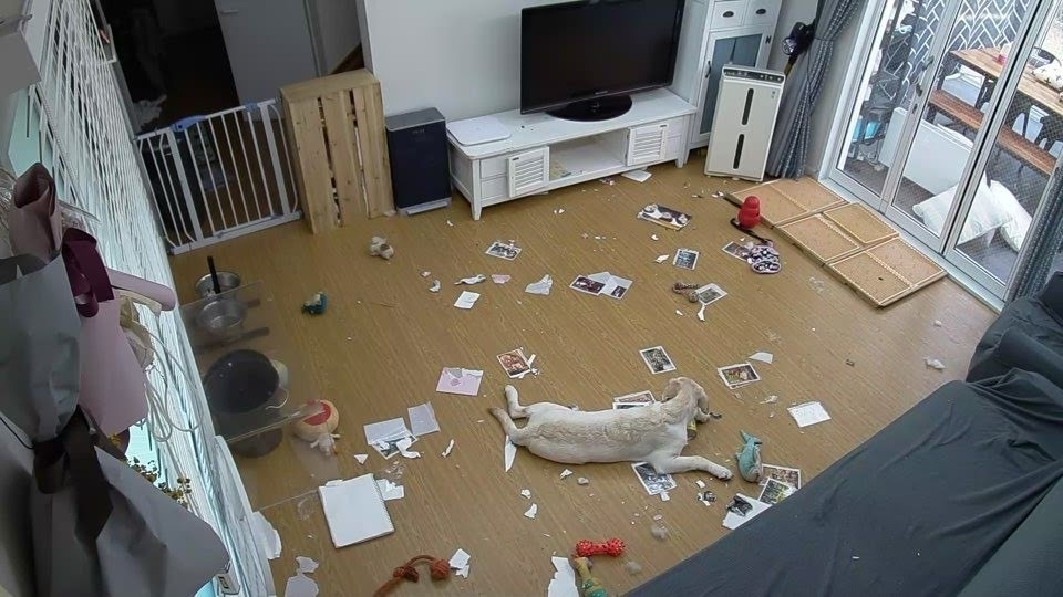 평소에 거실장을 자꾸 물어 뜯고 옆으로 밀길래 불안하긴 했는데... TV가 넘어갈 줄은 몰랐습니다.