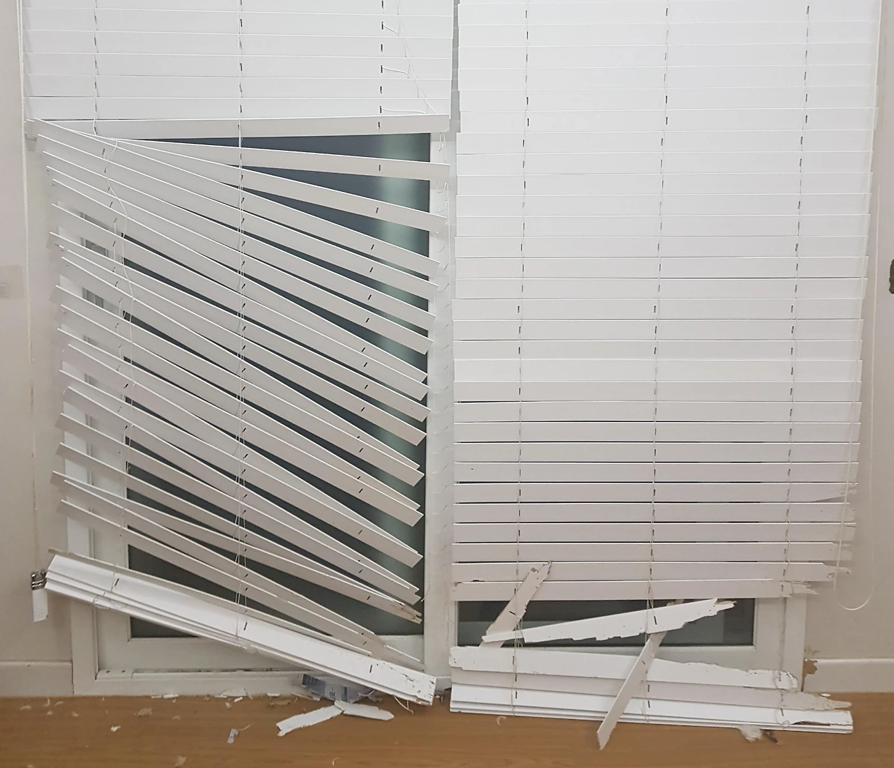 어떤 날은 거실 우드블라인드를 아작 냈습니다.