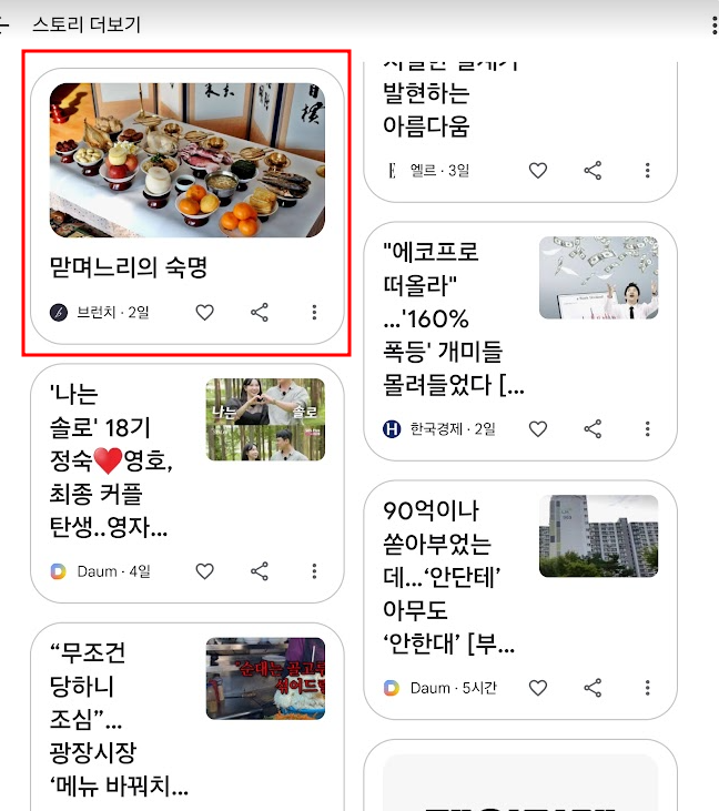 내 글이 어디에 노출되고 있는지 궁금했다. 다음메인페이지에 가봤지만 아니었다. 조회수는 계속 올라가는데... 어디지? 여기저기 찾아보니 구글 스토리에 노출된 것이었다. 여기저기 헤매다 내 글을 찾고 나니 반가웠다.