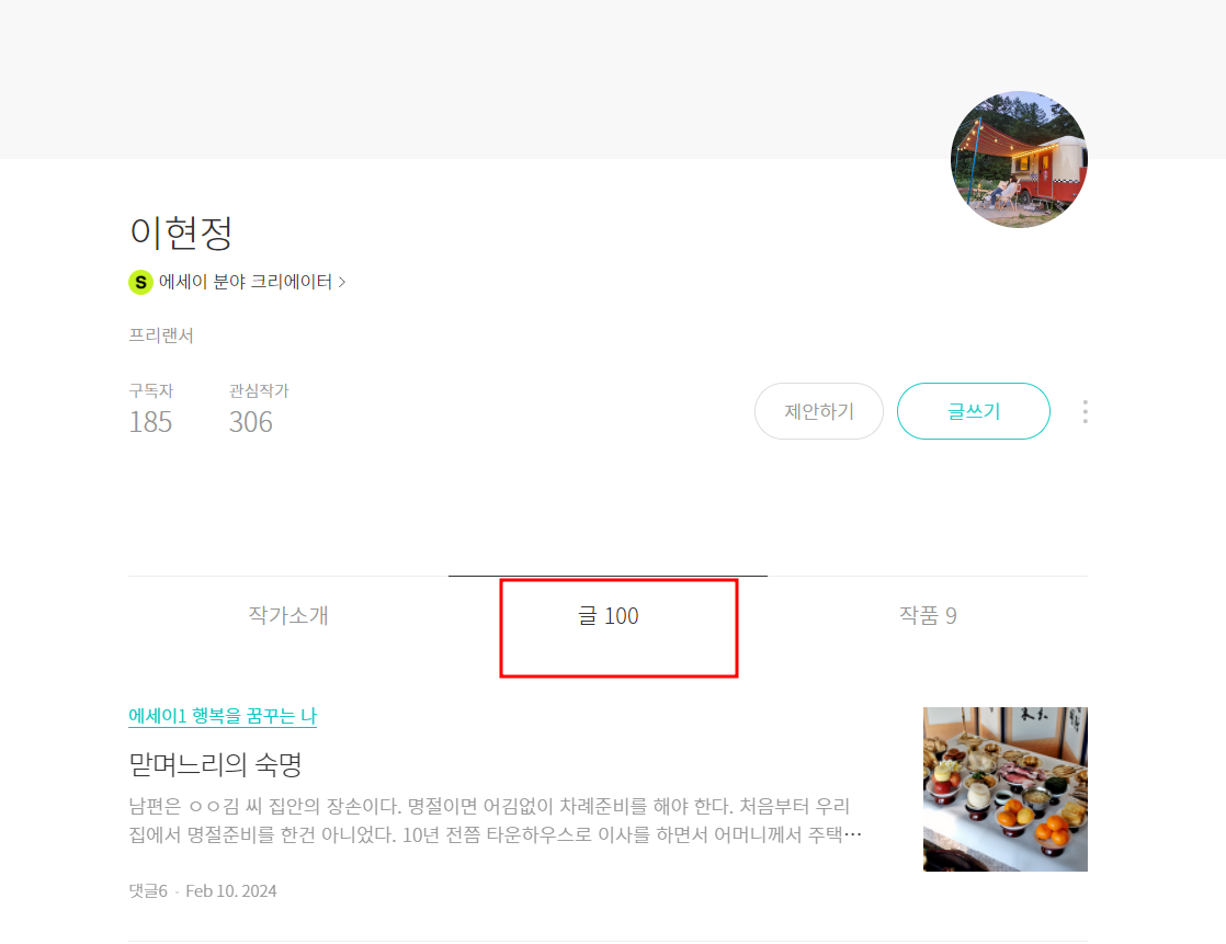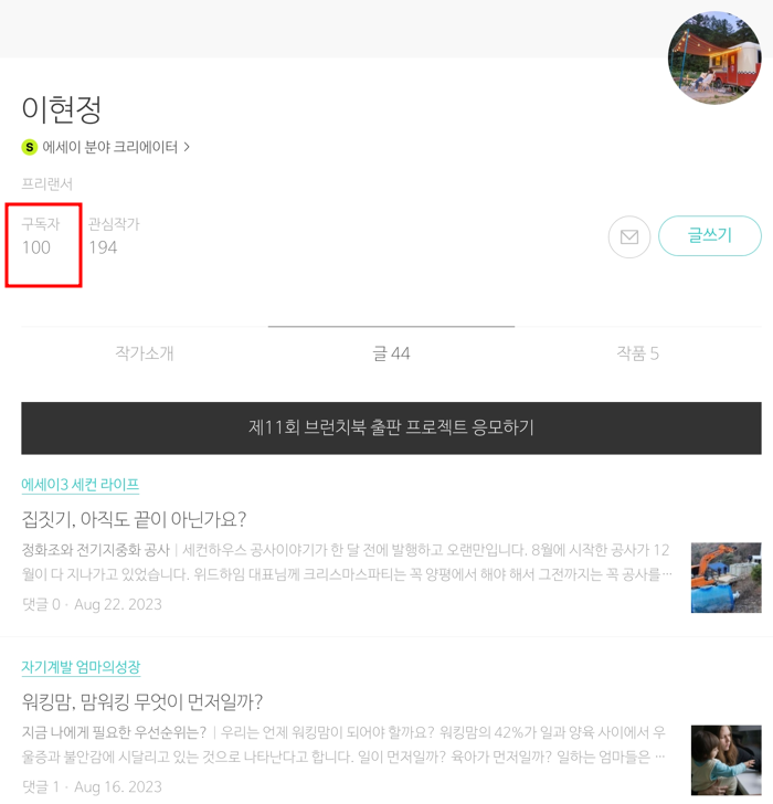 브런치를 시작한 지 10개월에 접어들었다. 처음에는 브런치가 뭔지도 모르고 시작했다. 왠지 브런치에는 고심하고 퇴고를 마친 잘 쓴 글만 발행해야 한다는 부담이 생기기도 했다. 하지만 이제는 여기에 글을 쓰면서 일상을 기록하고 나를 되돌아보는 계기가 되었다. 그렇게 하나씩 발행을 시작했는데 브런치에만 어느새 100개의 글을 썼다. 100명의 팔로워가 되었을 때도 너무 신나서 기록해 두었다.