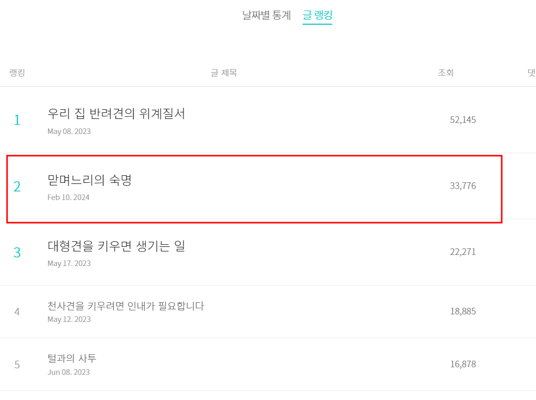 어느새 글이 3만 뷰가 넘어갔다. 보리이야기 이외에 1만 뷰가 넘은 것은 처음이어서 신기하기도 하고 기분이 좋았다. 구글의 위력인가? 제목빨이라고해도 괞찮다. 누군가에게 공감이 되는 글을 쓰고 싶은 게 작가의 마음이라고 생각한다.