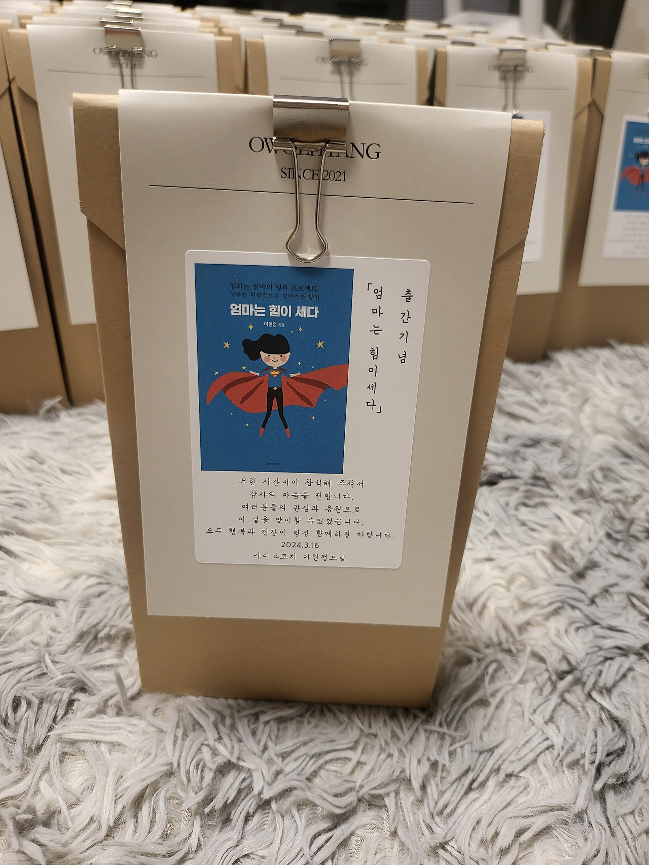 멀리서 나를 보고 와주시는 분들을 위해 소소하지만 답례품도 준비를 했다. 출간기념회를 진행한다고 하니 제주에서 바로 비행기 티켓을 예매한 친구, 부산에서 강원도에서 서울까지 장거리를 온다고 연락하신 분들, 열일 제쳐두고 오겠다고 하셔서 너무 감사했다.