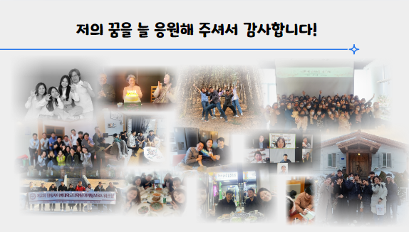 일 년간 고민하면서 힘들었던 순간이 보람으로 다가왔다. 이렇게 주위에 감사하고 고마운 분들이 많이 있었다. 힘이 난다. 이 감사함을 어찌 표현할 수 있을까... 더욱 배려하고 베풀며 살아야겠다고 생각이 들었다.