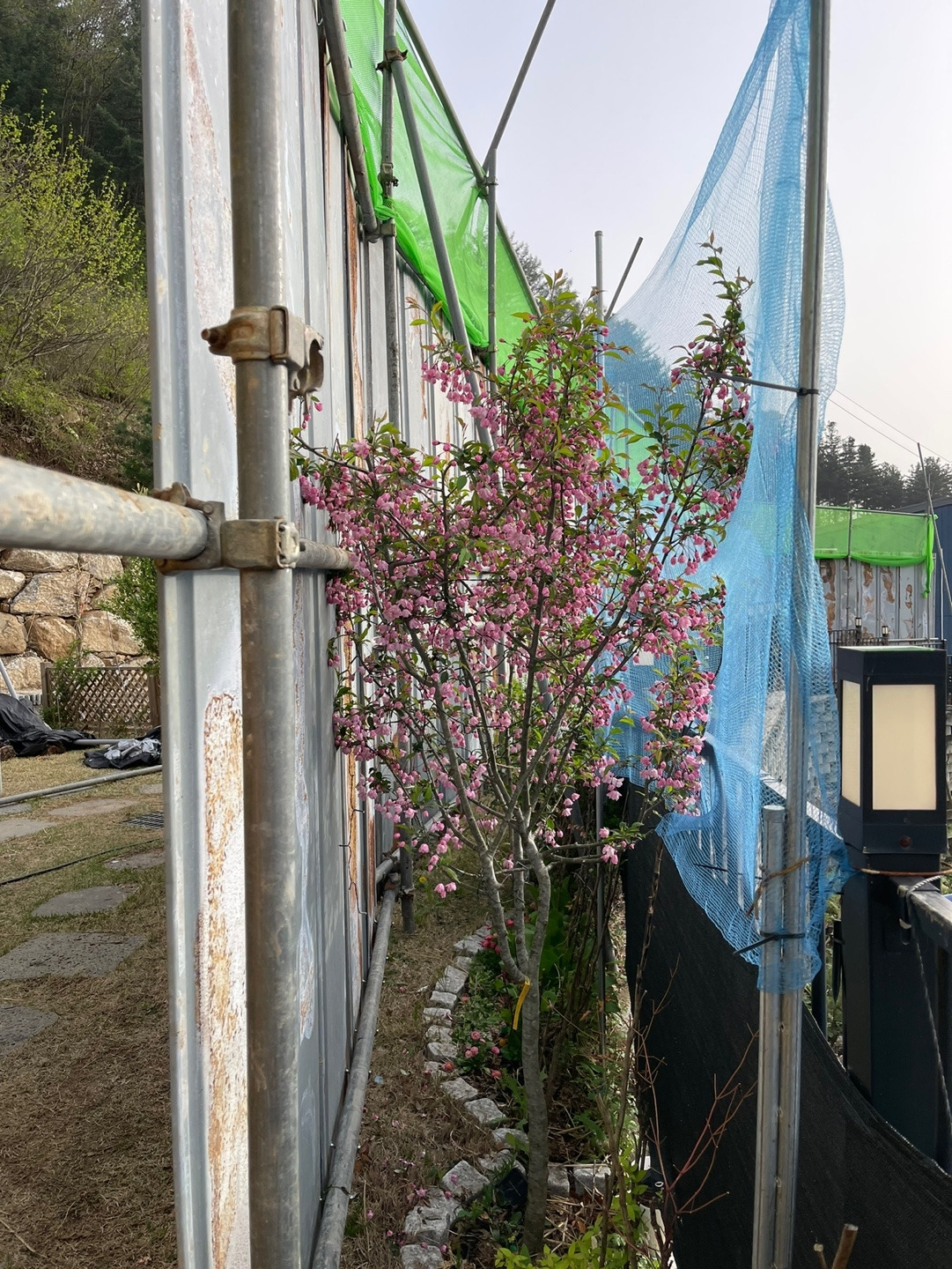 주말이 되어 양평에 도착하니 사방이 꽉 막힌 철벽이 나를 반겨주었다. 마음이 꽉 막힌 것처럼 답답했다. 봄 한 철만 볼 수 있는 서부해당화가 만개했는데... 철벽 밖이라 몰래 훔쳐봐야만 보였다ㅜㅜ 얼마 전에 심어놓은 퐁퐁 데이지 꽃도 시야에 안 들어왔다. 주말에 양평에 가도 우울했다. 다행히 파란 하늘은 잘 보였다.