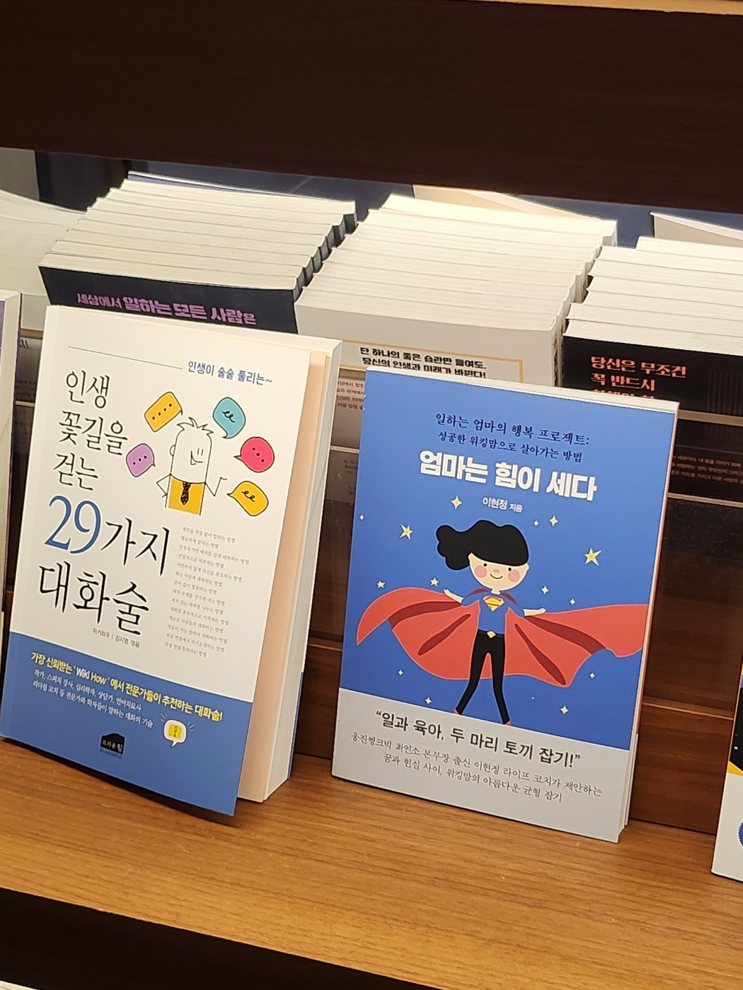 <엄마는 힘이 세다>를 출간하고 첫 주에는 이렇게 가기계발분야 매대 위에 내 책이 올라와있었다. 하지만 그 기간을 얼마 안 되고 이제 스멀스멀 매대에서 없어지고 책꽂이로 들어가게 되었다. 신인작가에게는 너무 당연한 코스라고 생각한다.