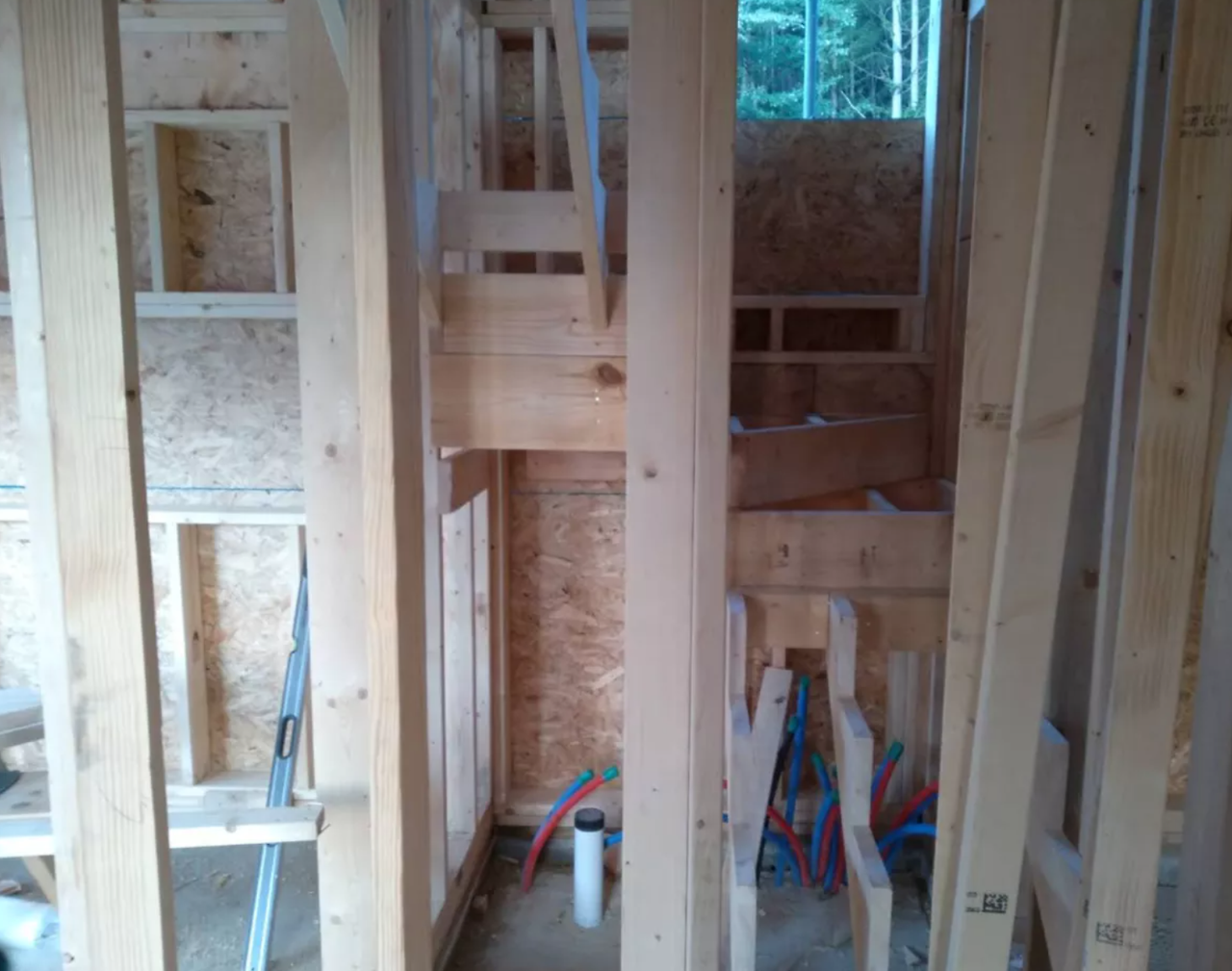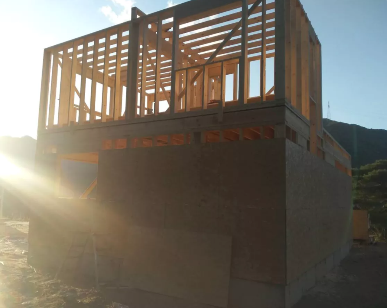 합판으로 벽을 둘러싼 모습을 보니 집이 거의 지어진 것 같다. 하지만 이건 공사의 30% 정도 밖에 안 된 상태이다. 아직도 갈길이 멀었다. 이렇게 집 짓기가 착착 진행되니 다음은 어떤 공정을 하는지 궁금해졌다. 외벽공사가 다되고 나서 안에서 무언가를 또 만들고 계셨다.