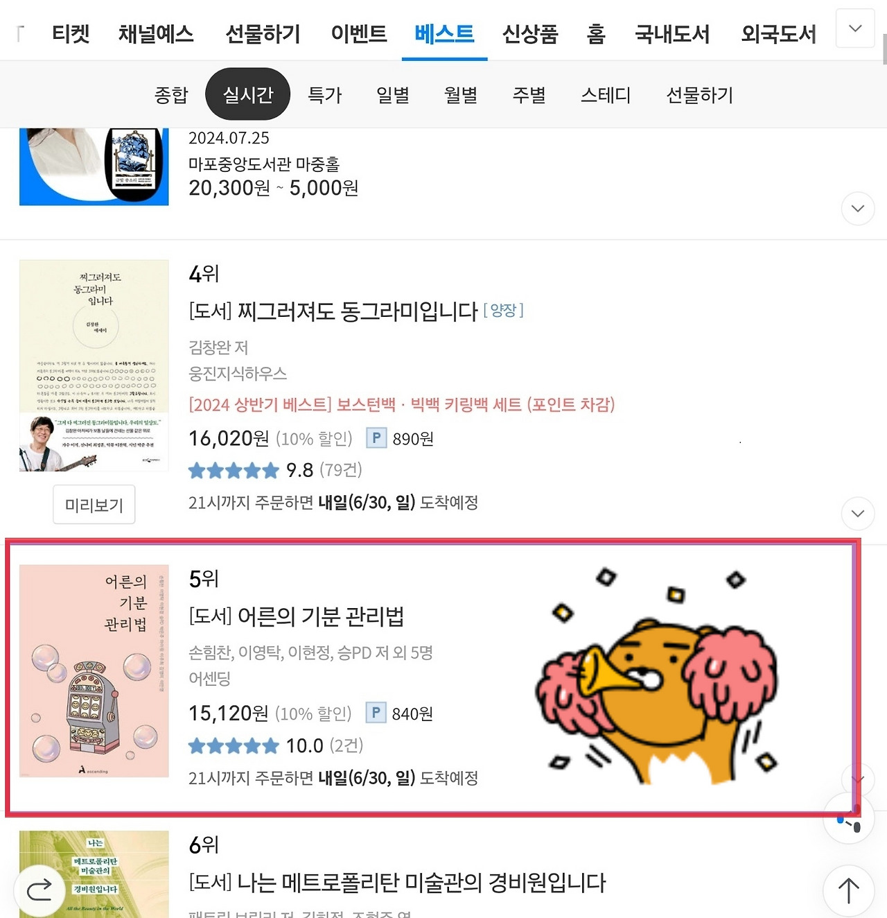 푸짐한 상차림에 모두들 신나고 즐거운 시간을 보냈다. 함께 즐거운 시간을 보내는 동안 좋은 소식이 들려왔다. 바로 [어른의 기분 관리법]이 온라인 서점 에세이 부분 5위라는 반가운 소식이었다!!! 10위권 내에 들어도 너무 기뻤는데, 5위라니?! 우린 너무 기뻐서 펄쩍 뛰었다!
