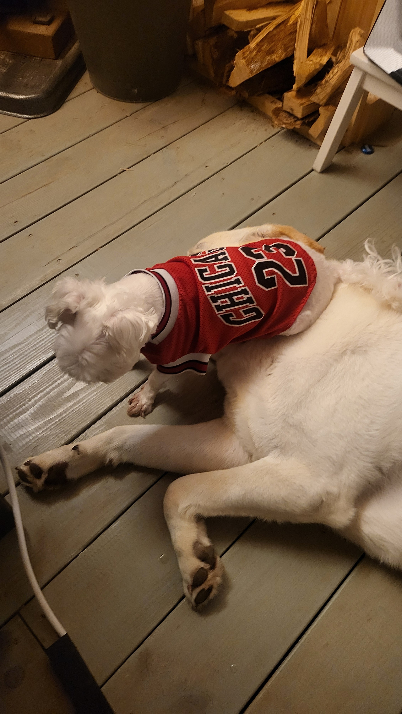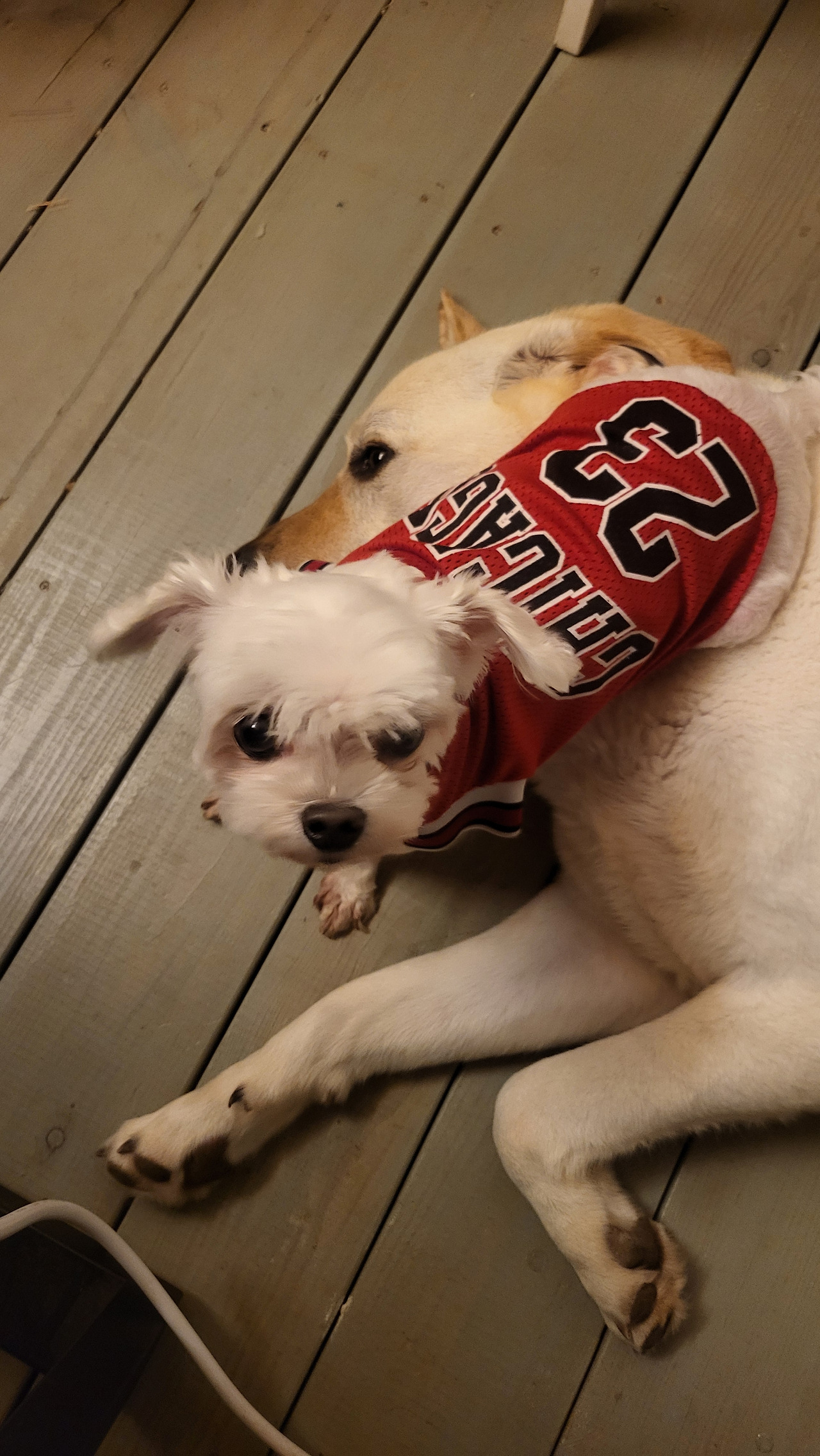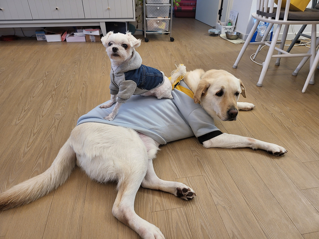 이제 아얘 포기한 것 같다. 등에 앉던지, 얼굴을 깔고 앉던지 전혀 신경 쓰지 않는다. 언제 어디서나 아무런 반항 없이 등을 형에게 내어주는 보리는 말 그대로 천사견이다!