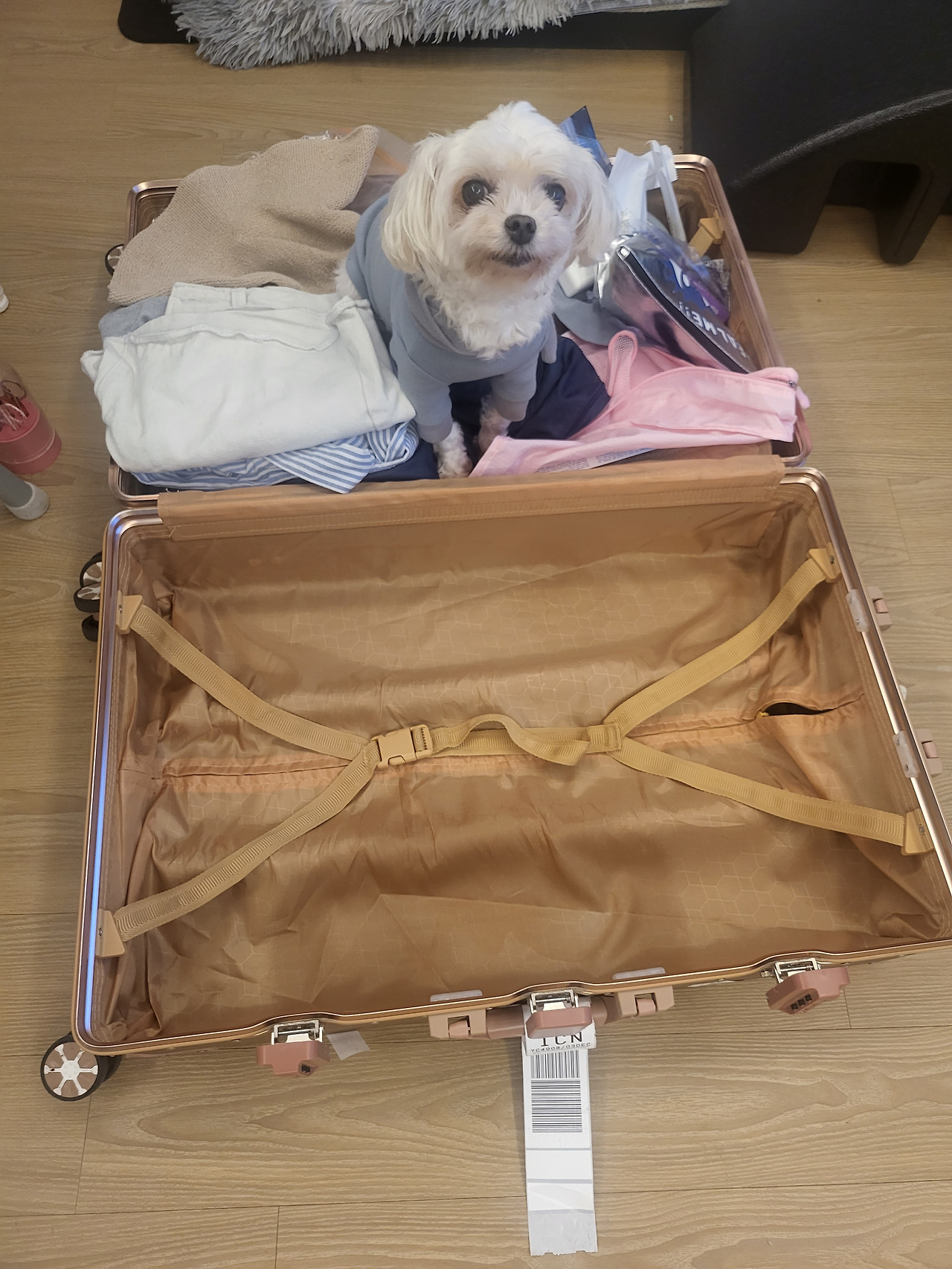 주중에 분당에서 지내다 토일 오전이 되면 해피와 함께 부랴부랴 양평으로 향했다. 양평에 가기 위해 이것저것 짐을 챙기도 있으면 어떻게 알고 해피는 안절부절못하며 잠깐 한눈판새에 짐을 쌓아놓은 가방에 들어가 있었다. 어차피 같이 갈 건데, 혹시나 두고 갈까 봐 불안한가 보다.
