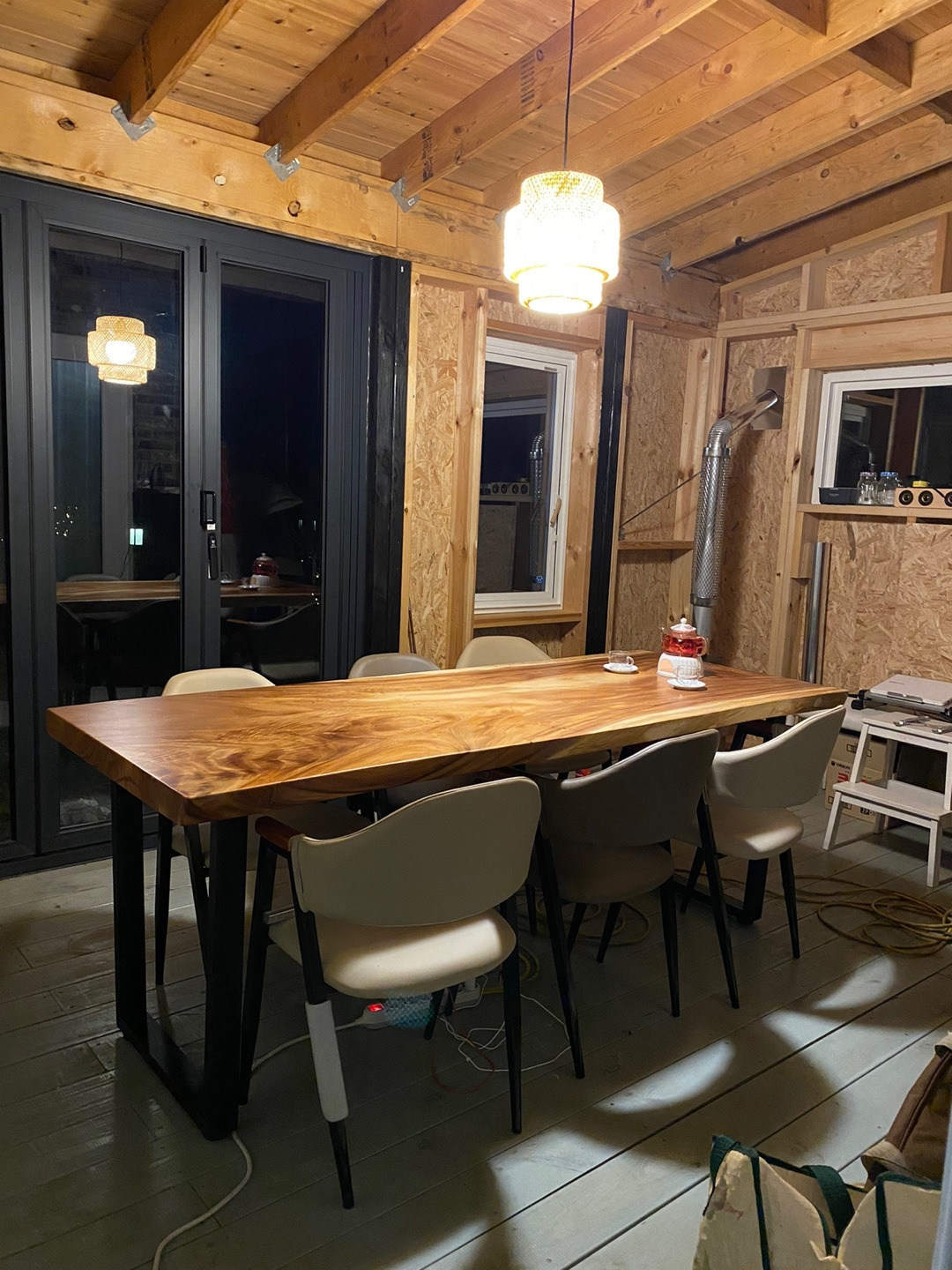 양평에서는 가을이 오기가 무섭게 겨울을 준비해야한다. 중부지방보다는 많이 춥다. 남편이 썬룸공사 중인데 이번주에는 테이블과 난로설치를 했다.