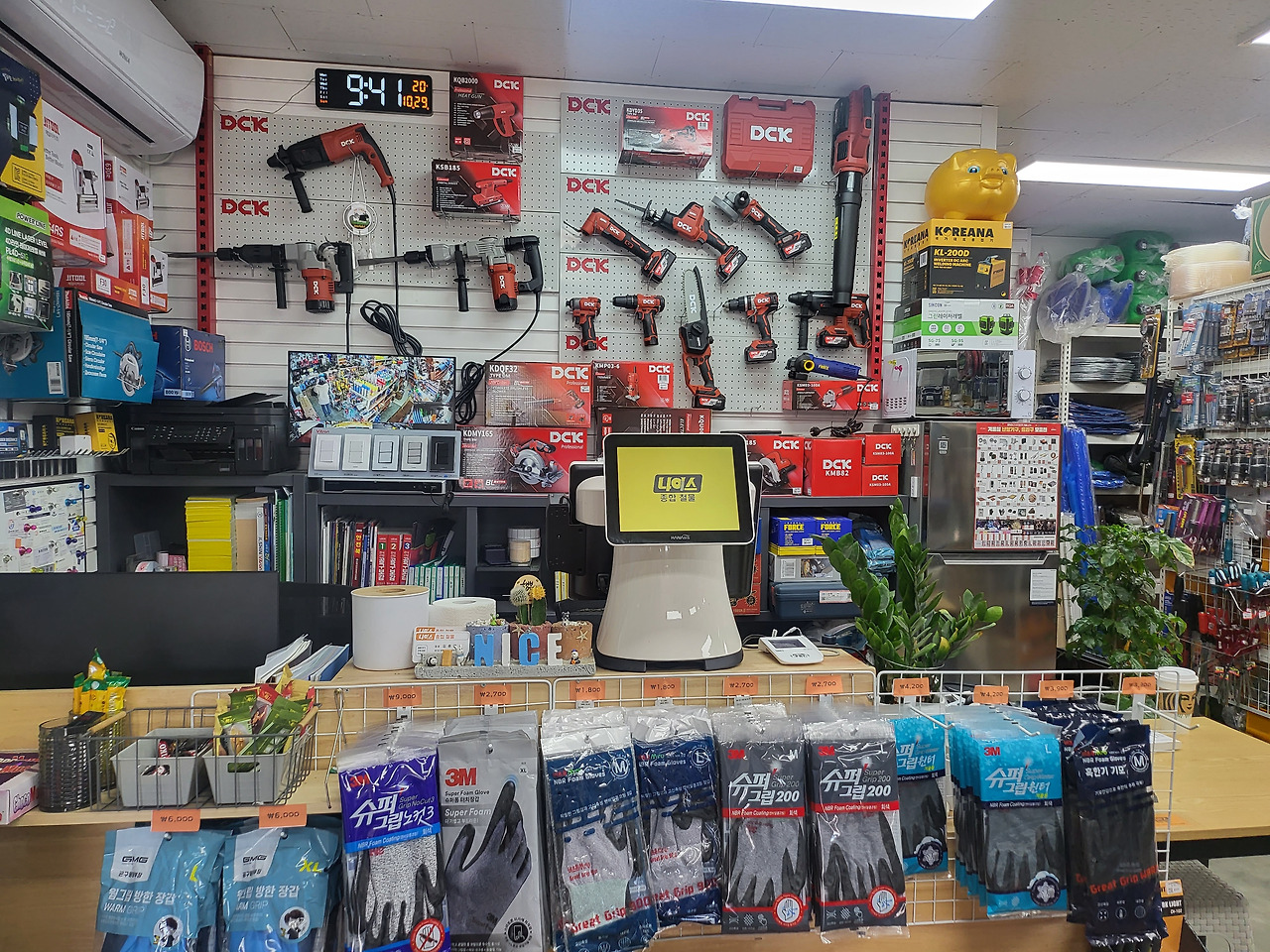 우리가 보통 철물점하면 떠오르는 것이 어두침침하고 복잡해서 물건을 찾기조차 힘든 곳이 대부분이다. 하지만 정리라면 누가 뭐래도 1등인 이사장님은 물건을 칼각으로 정리해 놓았다. 비라도 오는 날이면 손님이 한분 왔다 갈 때마다 걸레질을 할 정도다. 손님들이 되려 철물점이 왜 이렇게 깨끗하냐고 물으신다. 2000여 개 정도의 물건들의 가격표도 바코드로 다정리 해놓아서 '이거 얼마예요?' 묻지 않아도 가격을 알 수 있어서 편리하다.
