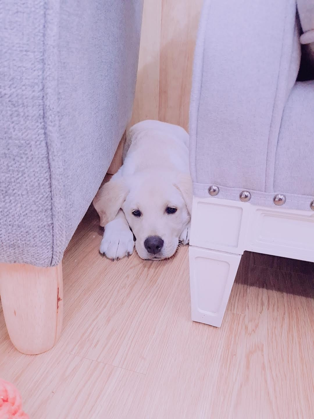 아마도 우리가 자는 모습이 너무 예뻐서 귀찮게 하니까 소파로 들어가서 맘 편하게 자는지도 모르겠습니다. 늘 소파아래서 편하게 잠자던 보리에게 어느날부터 걱정이 생기기 시작했습니다. 일주일 만에 1.5킬로에서 3킬로로 두배로 커버린 보리는 3주 정도가 지나자 5킬로가 넘어서... 소파아래 들어가기가 힘겨워지기 시작했습니다. 보리는 자기가 얼마나 컸는지 잘 못느끼니 영문을 몰라했습니다.