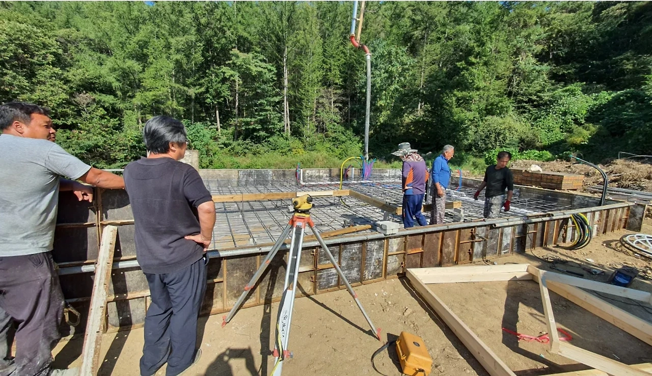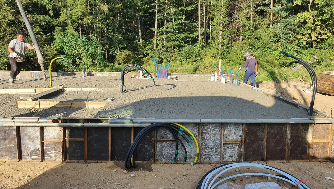 이렇게 레미콘차가 8번을 갔다가 들이붓고 나서야 기초 높이까지 차올랐다. 며칠간 양생을 하고 콘크리트가 완전히 굳고 나면 목구조의 집이 지어지기 시작한다. 시작이 반이라고 기초매트 공사만 한 건데도 벌써 다 지어진 것 같다. 콘크리트 기초 양생이 끝나고 나서 이제 본격적인 집 짓기가 시작되었다.