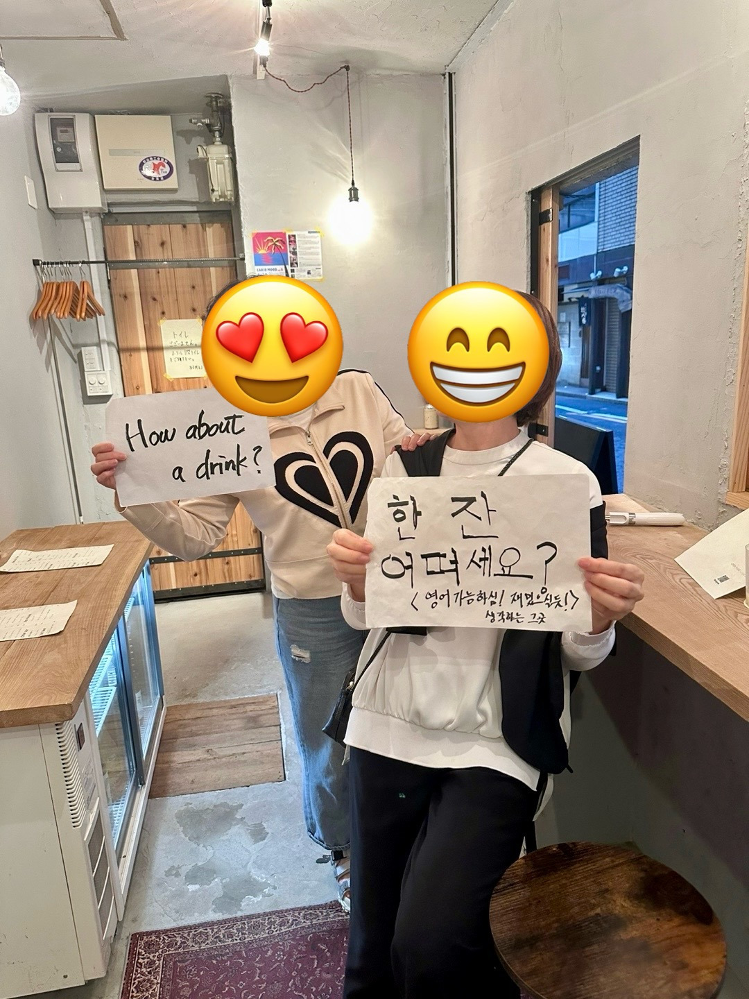 가게 이름은 NOMEL. 레몬(LEMON)의 거꾸로 쓴 이름이다. 주인장의 시그니처 메뉴는 'Cloudy 레몬 사워'였다. 역시 레몬이 주인공이다. 막걸리 같은 부드러움과 레몬의 상큼함, 주먹만 한 얼음이 어우러진 맛이 일품이었다. 다찌 스타일로 두 자리밖에 없는 이 작은 공간에서 주인장은 각국 언어로 "한 잔 하고 갈래요?"라고 쓴 종이를 흔들며 관광객들을 반갑게 맞았다. 저녁 전후로 두 번이나 찾았을 정도로 마음에 들었던 곳이다. 어스름 무렵 방문할 때는 손님이 우리 밖에 없어 주인과 이런저런 얘기를 나누며 인스타도 구경하고 사진도 함께 찍고 술에 대한 이야기를 들었는데, 식사 후 늦은 밤 다시 찾아가니 그 좁은 곳에 손님들이 8명가량 서서 술을 마시고 있었다. 바깥 거리에도 손님이 열린 창을 사이에 두고 주인에게 주문하고 대화를 나누고, 손님들끼리도 서로 대화하며 즐긴다. 주인장이 우리를 기억하고 반가운 웃음으로 맞아주었다. 동네 주민도, 우연히 들어온 우리도, 그 공간에선 모두 같은 친구가 된 듯하다. 이 작은 공간이 술 한 잔과 음악으로 하나가 된다. 비좁은 이곳이 이렇게 많은 사람으로 붐빌 수 있다는 것이 놀랍기도 하고, 비좁음이 오히려 ‘함께‘한다는 기분 좋은 반전으로 연결이 된다. LEMON을 거꾸로 해 NOMEL이라 이름을 지은 것처럼 말이다. 바에 들어오지 않아도 퇴근길 단골인듯한 사람들이 지나가며 경쾌한 목소리로 인사를 한다. 이 공간 속의 그루브가 우리에게 멋진 마지막 밤을 만들어 주었다.