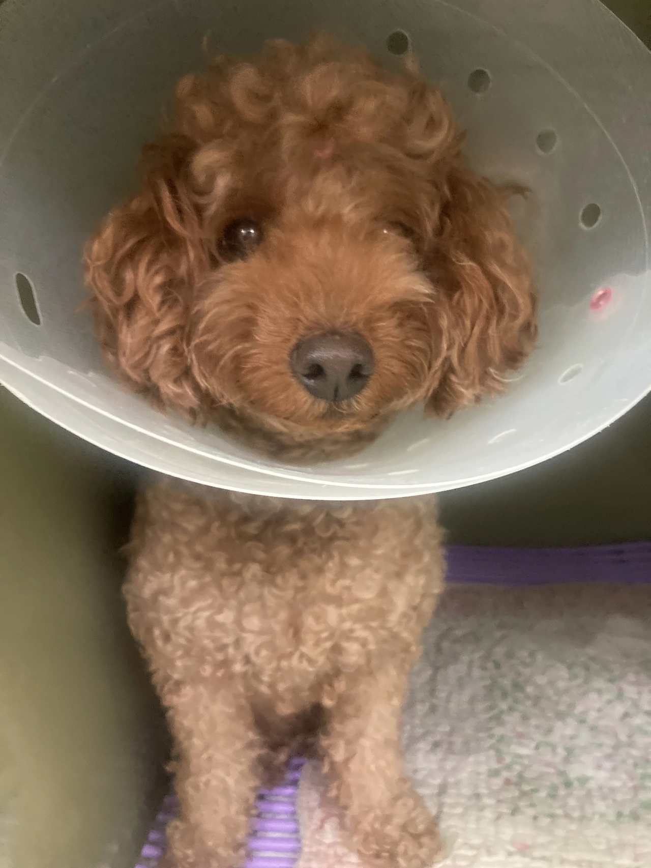 강아지가 슬개골 수술을 해서 입원을 3주가량 하고 있다. 푸들 특유의 분리 불안이 있어 면회 갔다가 집에 가면 더 힘들어할까 봐 면회를 가지 않고 기다렸다. (분리불안은 내가 더 있다.) 그런데 며칠 전에 스스로 턱을 긁어 붉게 부풀어 올랐다.