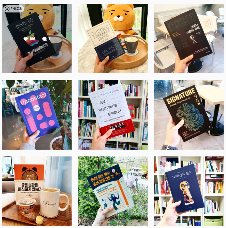 나는 호기심이 많고 배우고 싶은 것이 많다. 하지만 교육이나 강의를 듣는 것은 많은 시간을 투입해야 하는 일이라 지금의 내 상황과는 맞지 않았다. 이런 저런 방법을 시도해보다 나에게 가장 효과적인 공부 방법은 책을 읽는 것이라는 것을 깨달은 후 2019년부터 2020년까지 습관만들기, 자기계발, 1인창업에 관련된 책을 150권 정도 읽었다. 요즘엔 코로나 때문에 아이들이 집에서 온라인 수업하는 날이 많아져 책 읽는 시간이 많이 줄어들긴 했지만 매일 하루에 한 장이라도 책을 읽으려고 노력하고 있다. 인스타그램에 읽었던 책의 리뷰를 쓰며 나와 비슷한 취향을 가진 사람들과 소통하는 즐거움도 누리고 있다.