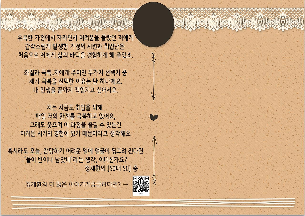 좌절과 극복. 내 앞에 놓인 이 두 가지 선택지중 극복이라는 선택을 하게 된 이유는 내 인생을 끝까지 나답게 책임지고 싶었지 때문이야.