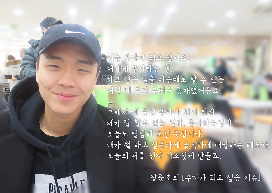 그래서 나는 남들과는 다른 길을 걸으려고 하고 있어. 나에게 부자가 되고 싶다는 말은, 내가 원하는 삶을 살기 위한 수단으로써의 이야기인 거지.