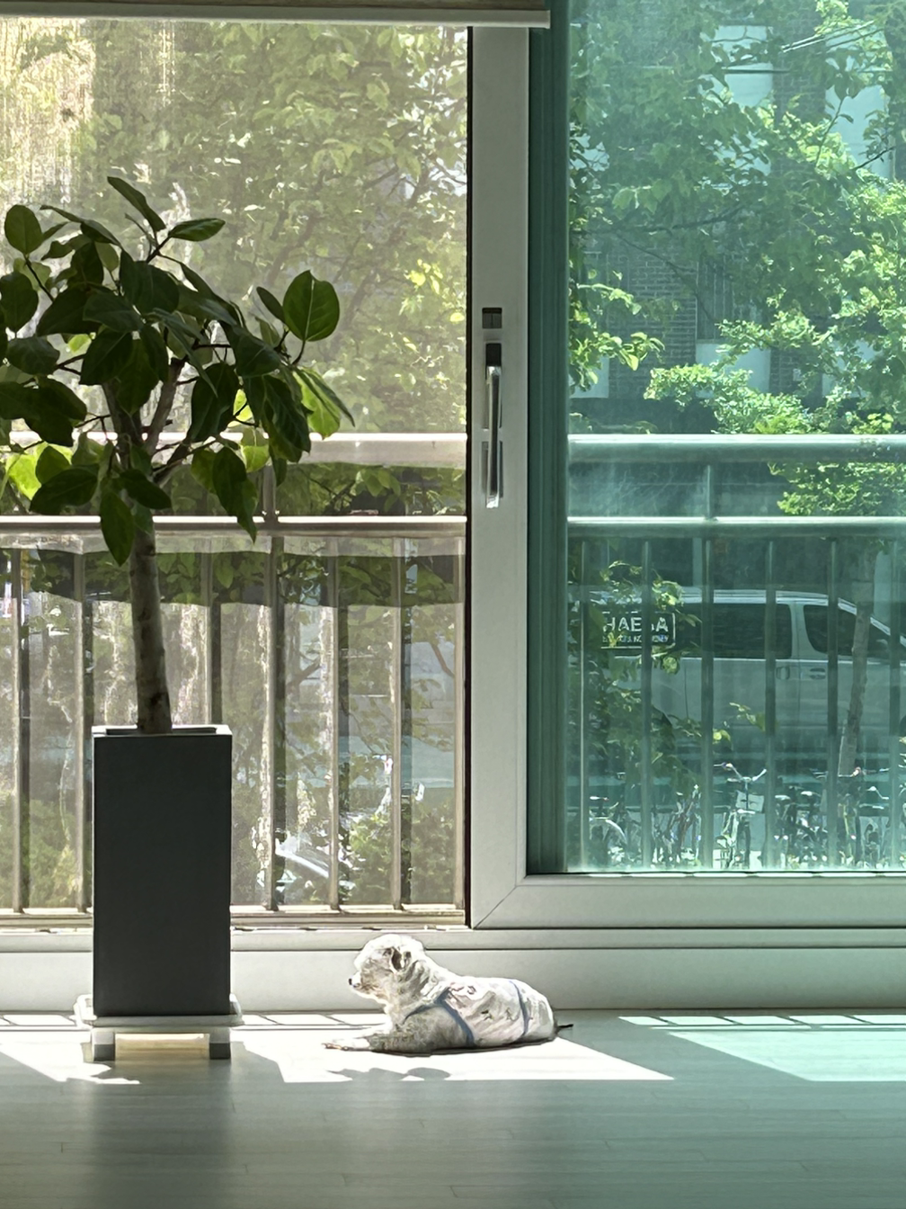 우리 집 강아지 몽이는 늘 아침마다 창가 앞에 엎드려 햇볕 쪼이기를 한다. 몽이와 함께 하는 토요일 아침, 몽이의 모습을 보며, 나도 따라 같이 햇볕 쪼이기를 한다