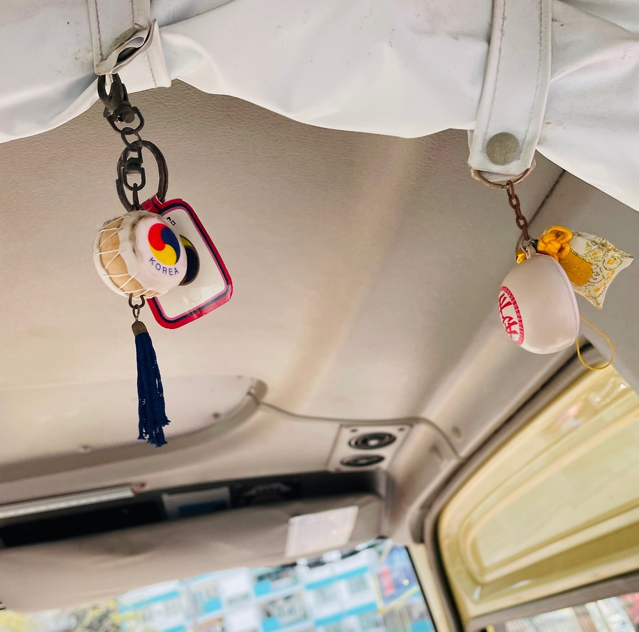 버스에 오르니 운전기사분의 취향이 한껏 묻어나는 아이템들이 버스 안에 장식품으로 달려 있는데, 그중에 한국의 전통 악기 북 열쇠고리가 보였다. 한국인이 알아볼 수 있는 아이템을 보니 처음 만난 기사님임에도