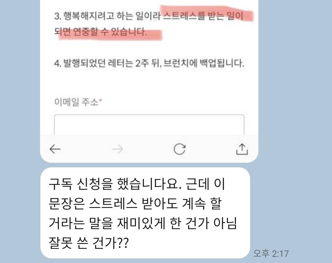 '스트레스를 받으면 해피레터를 연중(*연재중지의 줄임말)할 수 있다'