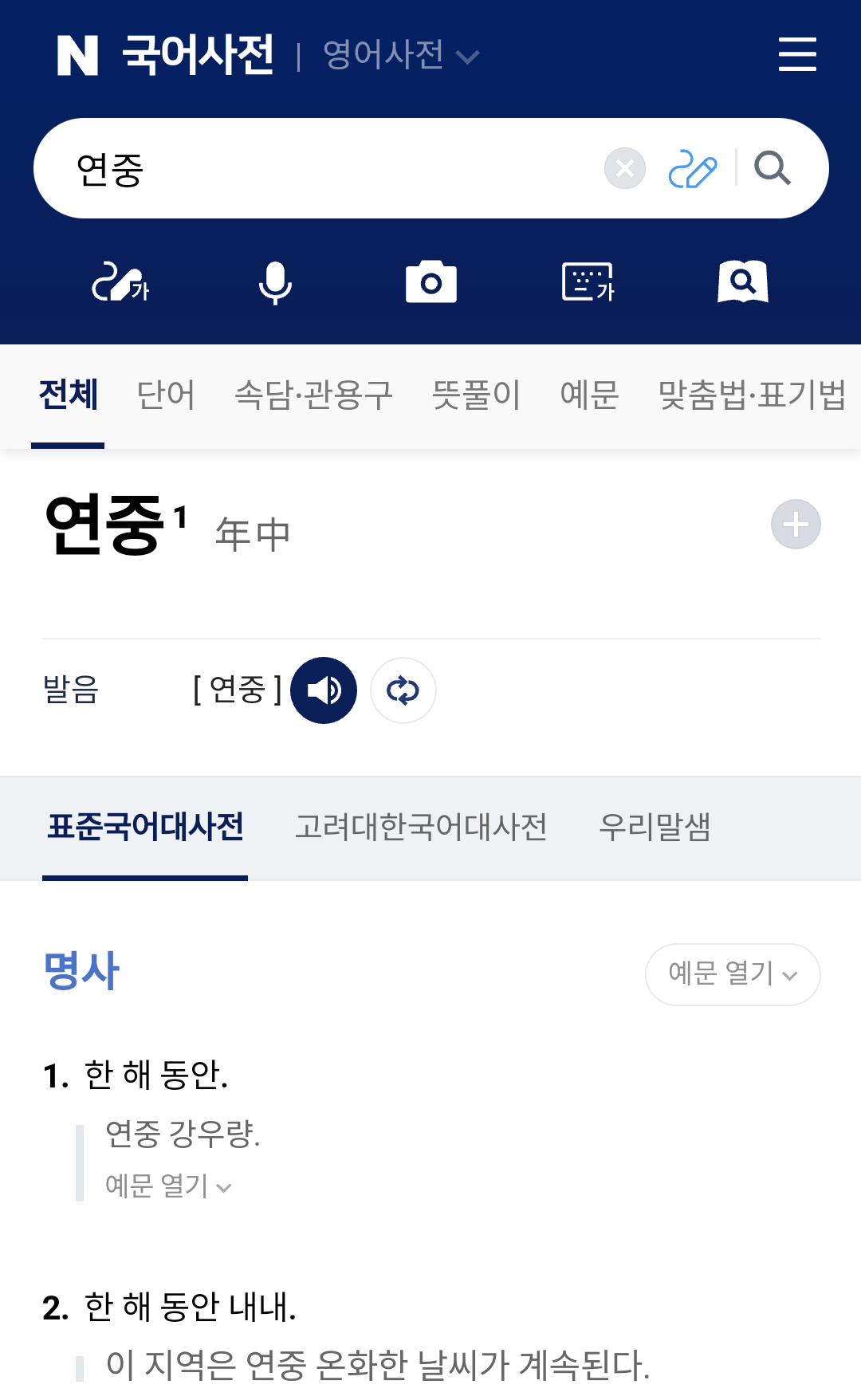 선생님의 말씀 뜻을 처음에 잘 이해하지 못했다. 그러다 '연중'이라는 말을 네이버 사전에 검색했다.