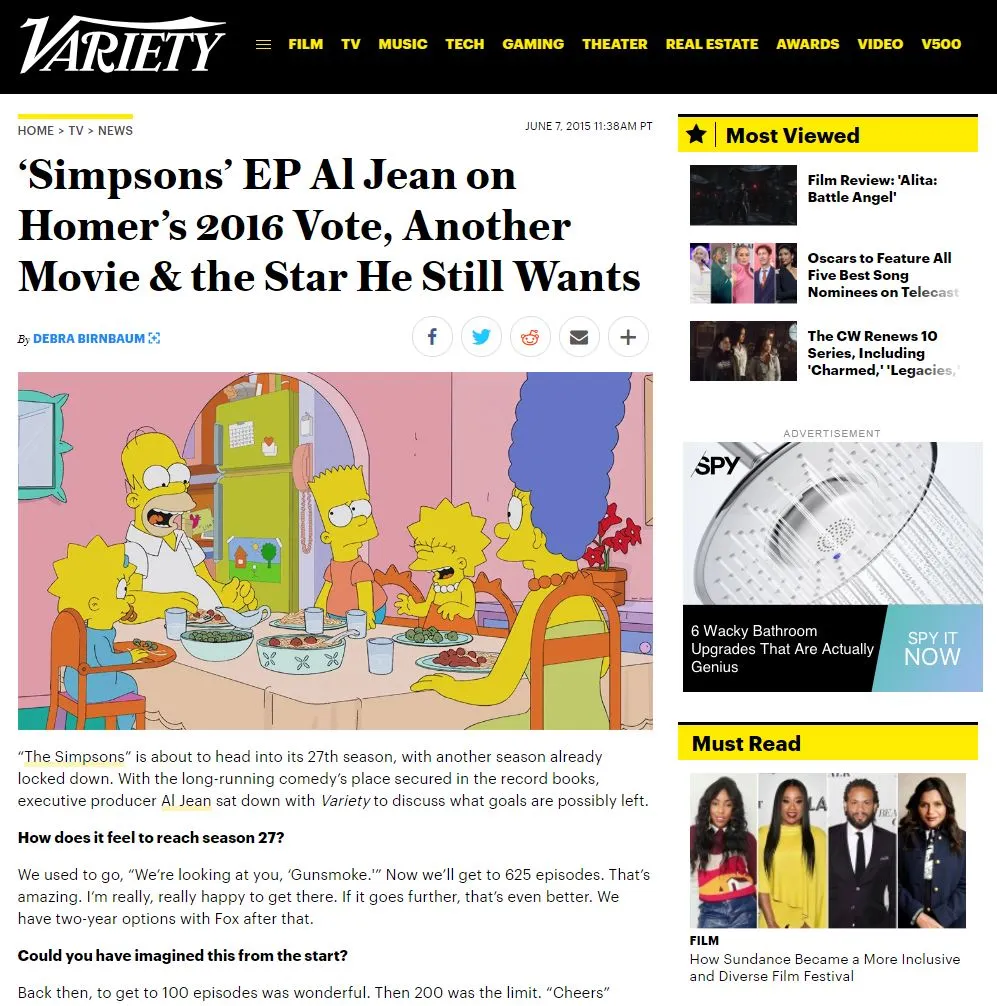 The VARIETY <'Simpsons' EP Al Jean on Homer's 2016 Vote, Another Movie & the Star He Still Wants>
