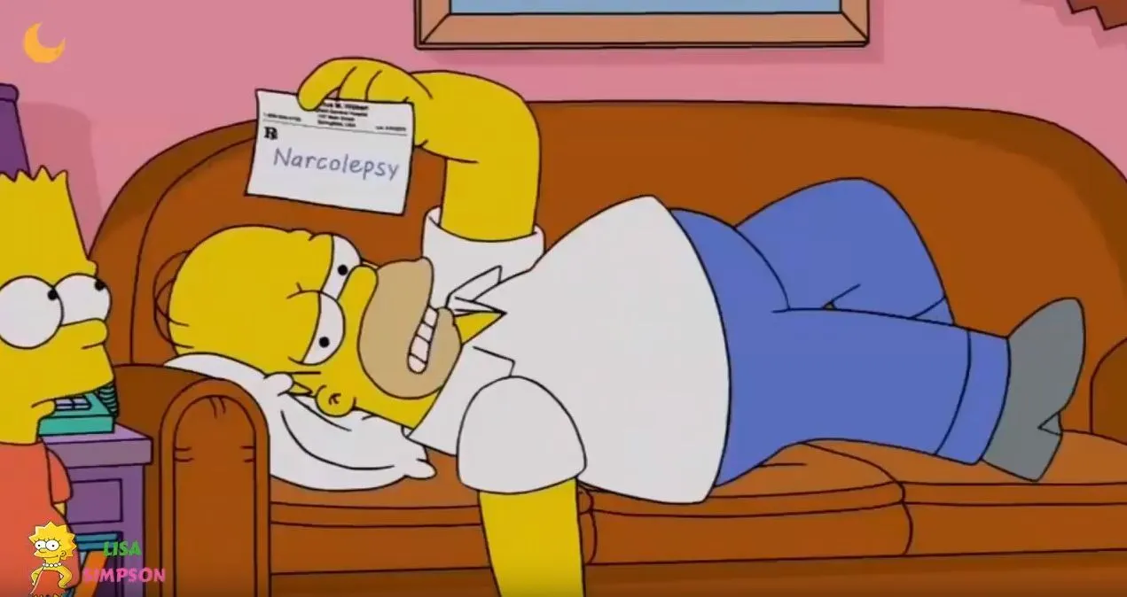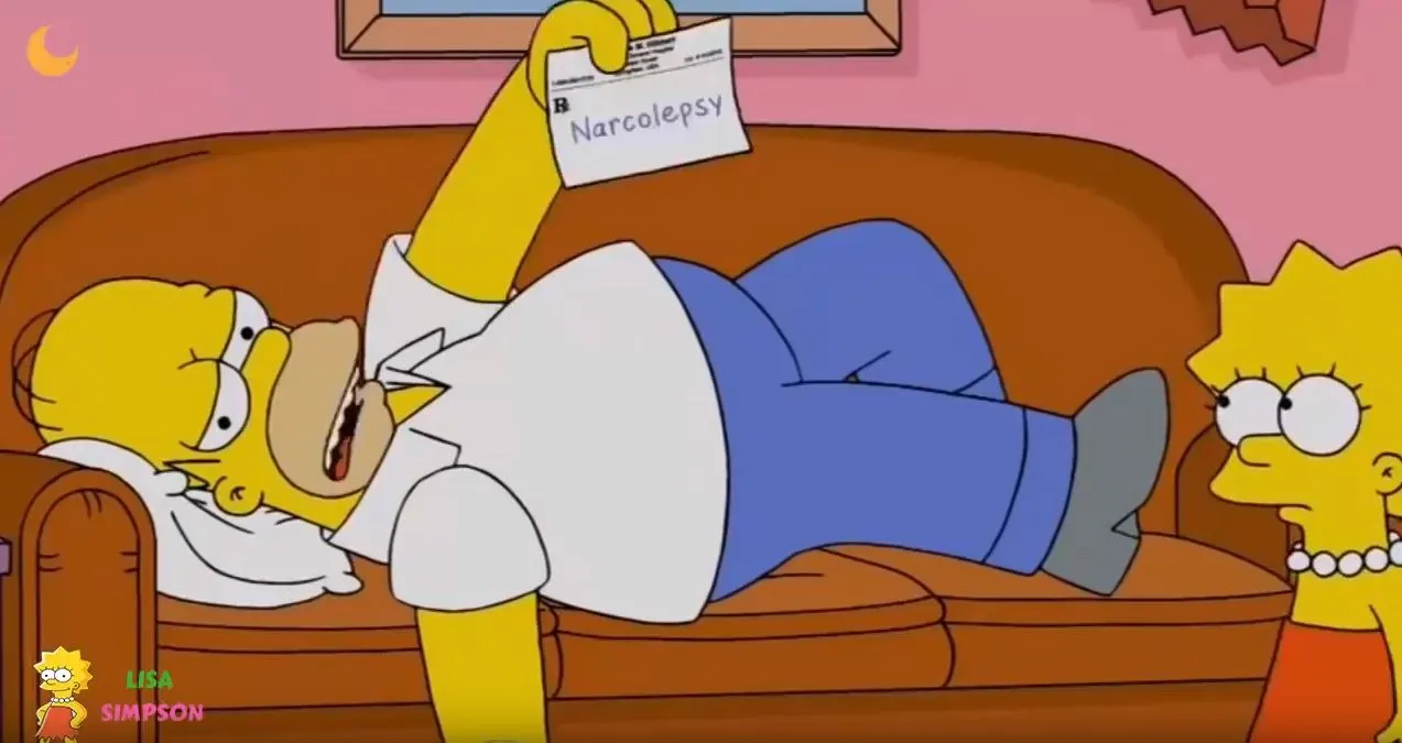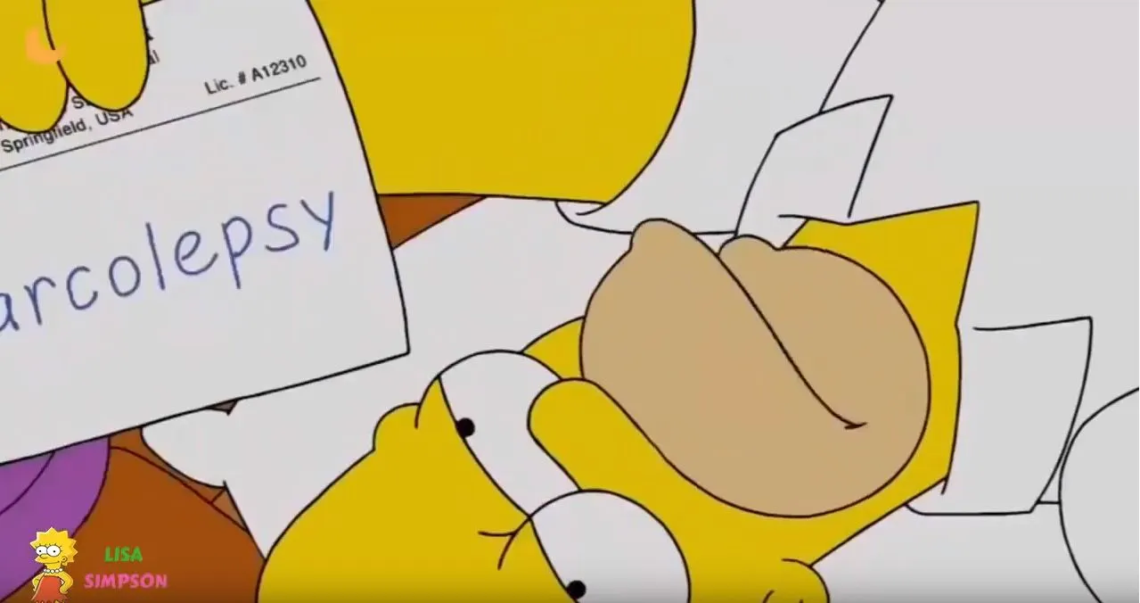 친구 집에 차로 데려다줄 수 있냐고 묻는 아들에게, 방에 거미를 잡아달라는 딸에게, 치료약을 타기 위한 처방전을 받으러 가야 한다며 걸려온 전화에, 막내 아기의 기저귀를 갈아줘야 한다는 부인에게 모두 의사 소견서를 내밀며 "기면증!(Narcolepsy)"이라고 말한다. 화가 난 부인은 심슨에게 하루의 절반을 낮잠으로 보낼 수 없지 않냐며 어서 병원과 약국으로 가서 기면증 치료약을 타오라고 말한다. 약국의 긴 줄을 기다리다가 심슨은 바닥에서 인형을 끌어안고 의도적으로 "기면증이여 나를 데려가 주오!"를 외치고 잠에 빠져버린다.
