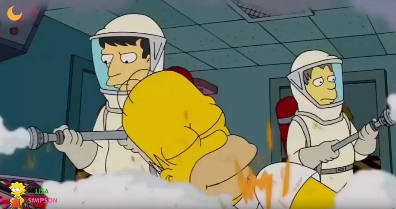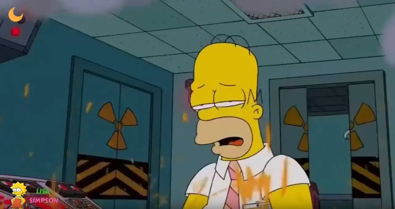 심슨의 직장 원자력 발전소 통제실에서 갑자기 졸아 기계 이상에 대처하지 못해 화재가 발생하고 그는 잠이든다. 화제 진압 중에도 심슨은 꿀잠을 잔다. 출처: YOUTUBE영상