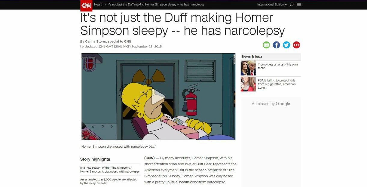 심슨이 그저 잘 조는 게 아니고 기면증이었다는 것을 보도한 CNN의 기사
