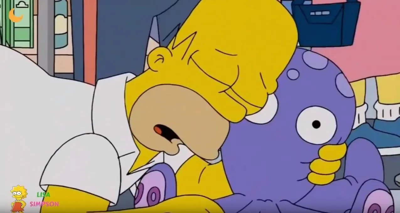 길게 늘어선 약국의 줄에 서서 귀찮아진 심슨은 기면증을 핑계대며 일부러 바닥에 누워 인형까지 끌어와서 껴안고 잠을 자버린다.