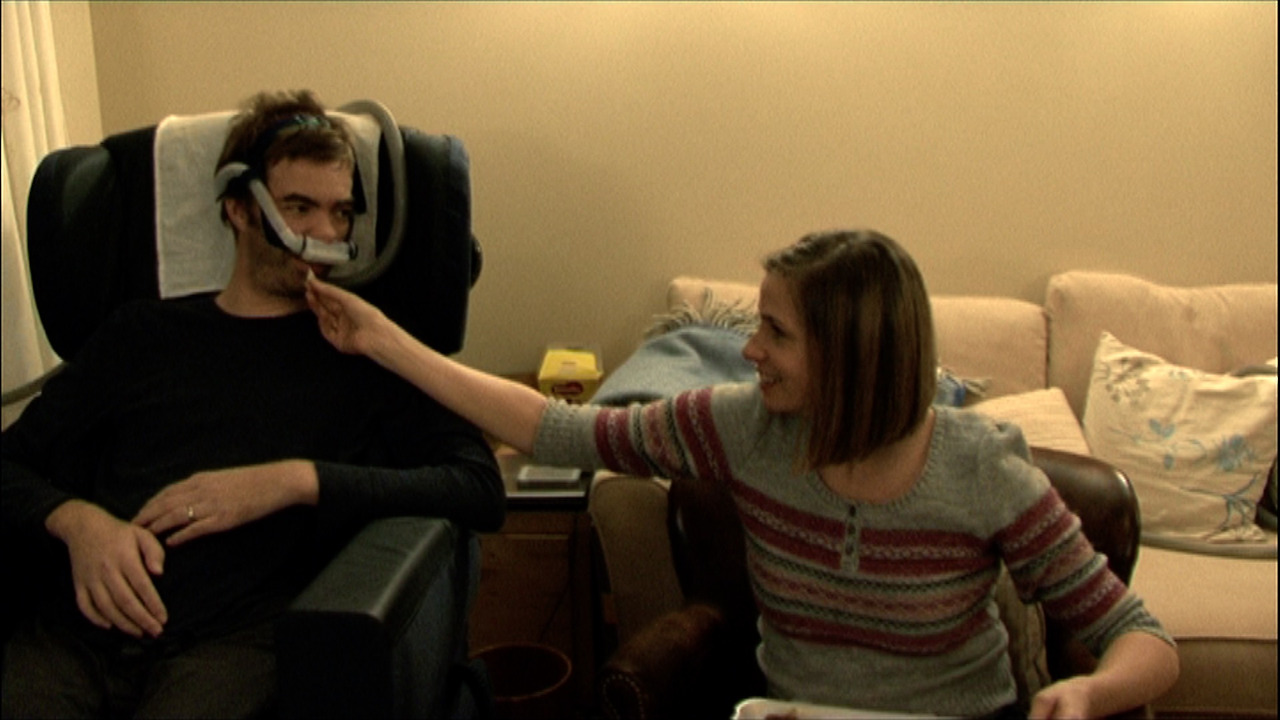 온몸이 마비돼 볼품없이 말라가고 두 콧구멍에 공기를 가져오는 것조차 스스로 하지 못하는 내 모습을 카메라로 기록해 많은 사람에게 전시하고 싶은 사람이 어디 있을까. 닐은 같은 병을 앓았던 아버지를 외면한 미안함과 같은 병을 앓을 누군가가 당신보다는 덜 고통스럽길 바라는 마음을 담아 카메라 앞에 섰다. 닐이 더 이상 기계의 힘으로도 호흡을 유지할 수 없어 기계들이 시끄럽게 경고음을 뱉어낼 때. 당황한 아내와 활동보조인들이 심폐소생술을 하다 카메라를 친다. 떨어진 카메라 렌즈가 천장만을 비추고 있을 때, 숨이 넘어가고 혀가 굳어 말도 잘 못하는 상태에서 닐은 "카메...라..."라는 단어를 뱉으며 카메라의 초점을 자신에게 맞춰주길 부탁한다.