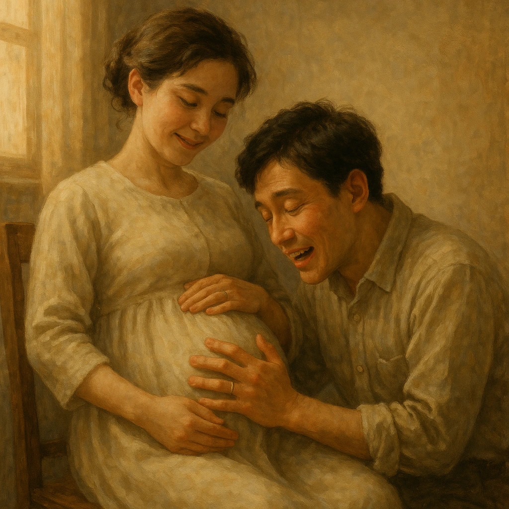 남편의 눈가가 젖어들었다. 그는 손으로 아내의 배를 오래 쓰다듬으며 다짐했다.