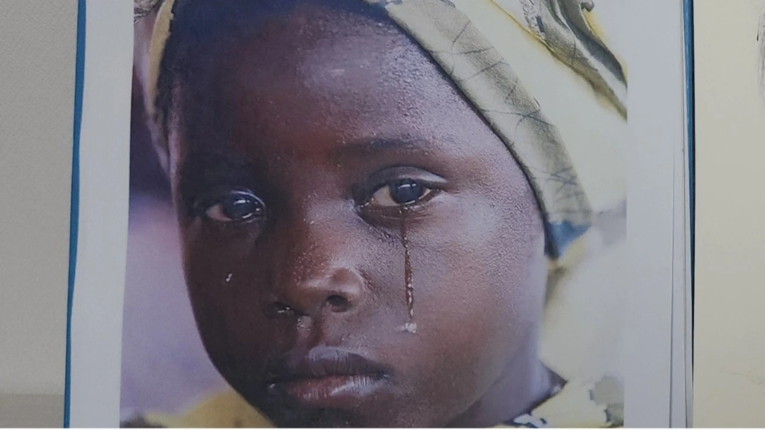 눈물을 흘리고 있는 흑인 소녀의 얼굴.