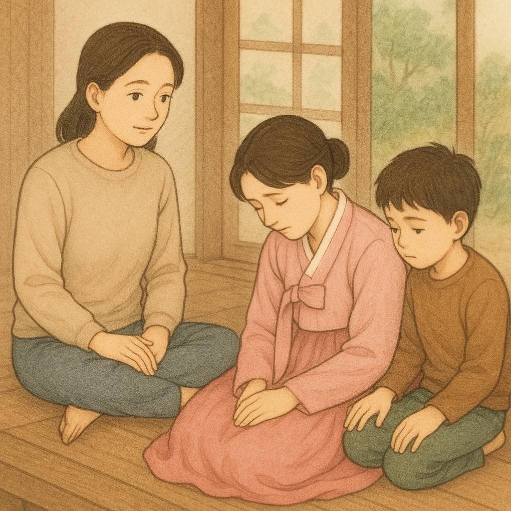 엄마는 형이와 현이를 데리고 마루로 나왔다.