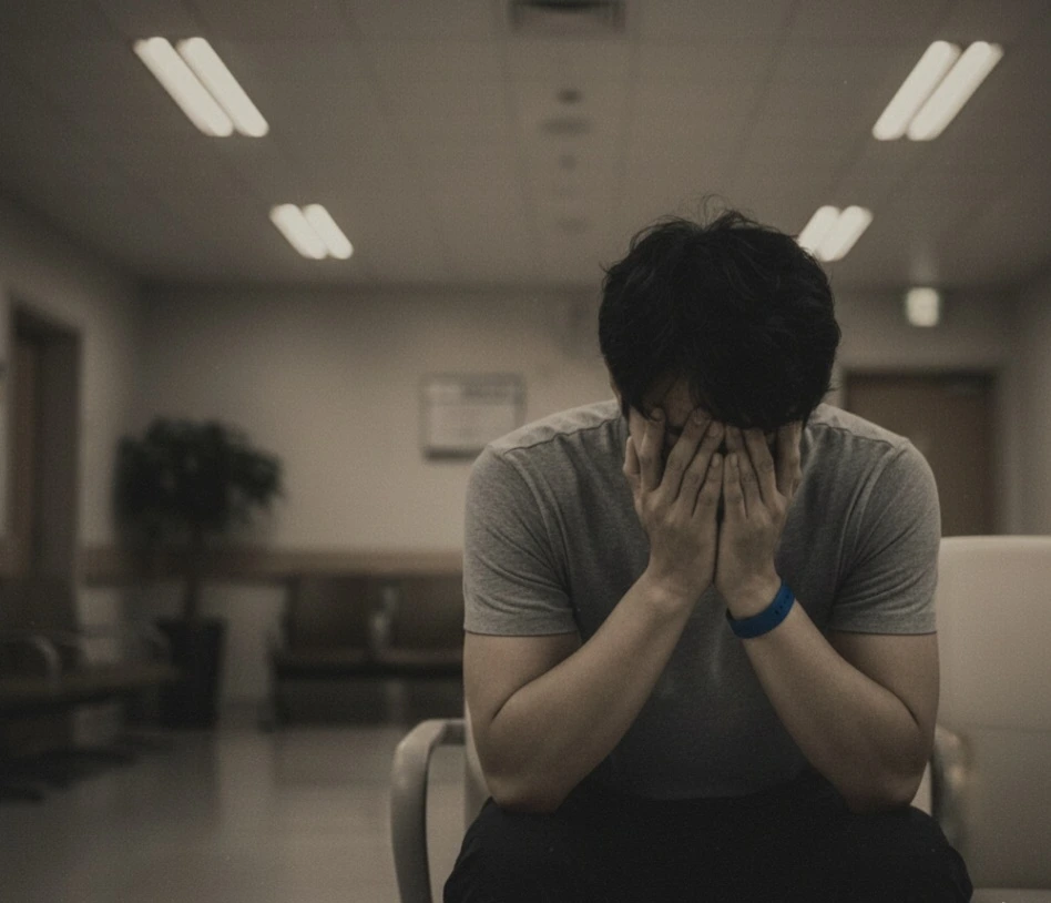 대기실 맨 안쪽, 사람들이 없는 끝자리에서 남자는 묻히듯 몸을 웅그렸다. 남자는, 두 손으로 턱을 감싸 쥔 채 눈을 감았다. 형광등 불빛이 눈꺼풀 너머로 희미하게 스며들었다. 접수창구에서 오가는 말소리와 누군가의 발걸음이 물속에서 들리는 소리처럼 멀게 느껴졌다.