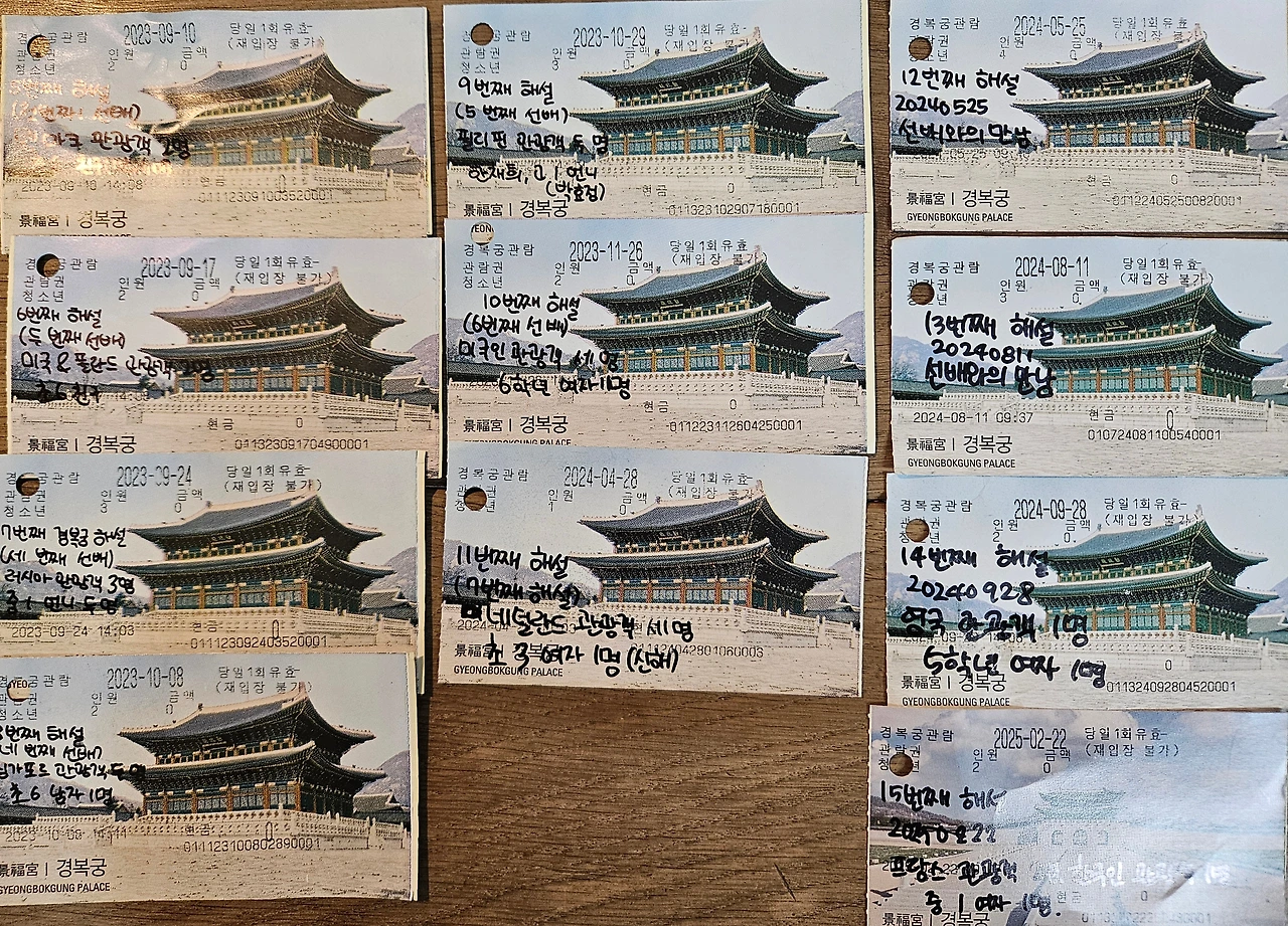 해설사 활동은 늘 아빠와 함께였다. 다행히도 서울지하철 3호선 라인에 있는 우리 집은 지하철 한 번으로 경복궁역에 내릴 수 있어 백토늬가 쉽게 교통편을 익힐 수 있었다. 그렇게 초등학교 6학년 1년을 아빠와 함께 다니면서 가는 길도 익히고, 해설만큼이나 아빠와의 해설 후 활동에 설레기도 했다. 광화문 근처에서 둘이서 이른 저녁을 먹고 교보문고에 가서 책도 보고 문구류도 골라 보는 재미가 쏠쏠했었나 보다.