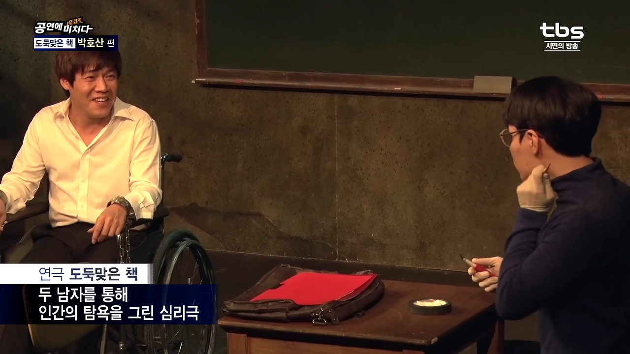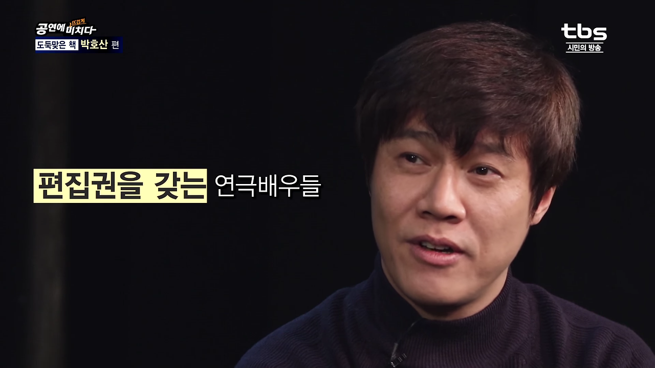 그와 인터뷰를 하고 얼마 지나지 않아, 그의 단호한 권유에 숙제를 하듯 다시 본 <도둑맞은 책>은 인터뷰 전 봤던 작품과 완전히 다른 것이었다. 뻔히 아는 내용임에도 긴장했고, 이미 본 구체적인 장면과 대사임에도 웃을 수 있었다. 심지어 박호산과 호흡을 맞춘 상대 C역할의 배우는 인터뷰 전에 봤던 회차에서도 공연한 배우였음에도 완전히 다른 C였다.