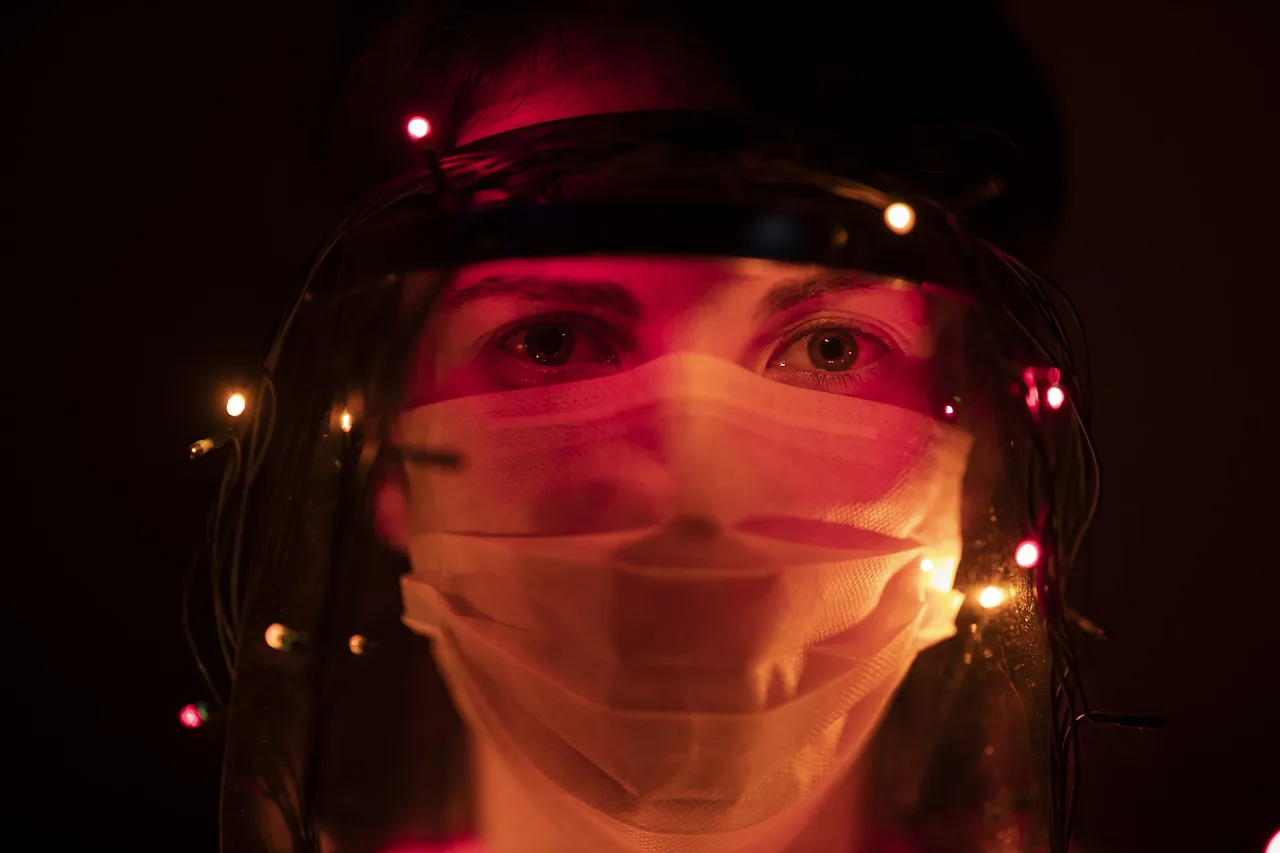 등산용 헤드랜턴을 이마에 쓴 채 나타났다.