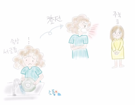 그러나 설거지가 끝날 무렵 엄마는 점점 후회와 자기반성의 늪에 빠져 우울해진다.