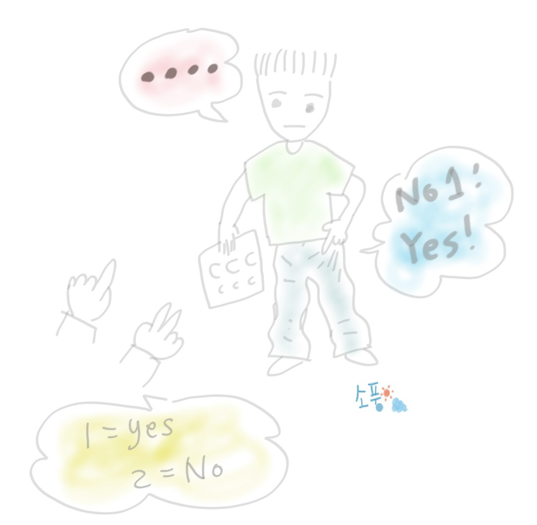 오늘도 손가락 신호를 다시 확인하고 스무고개 질문을 시작했다.