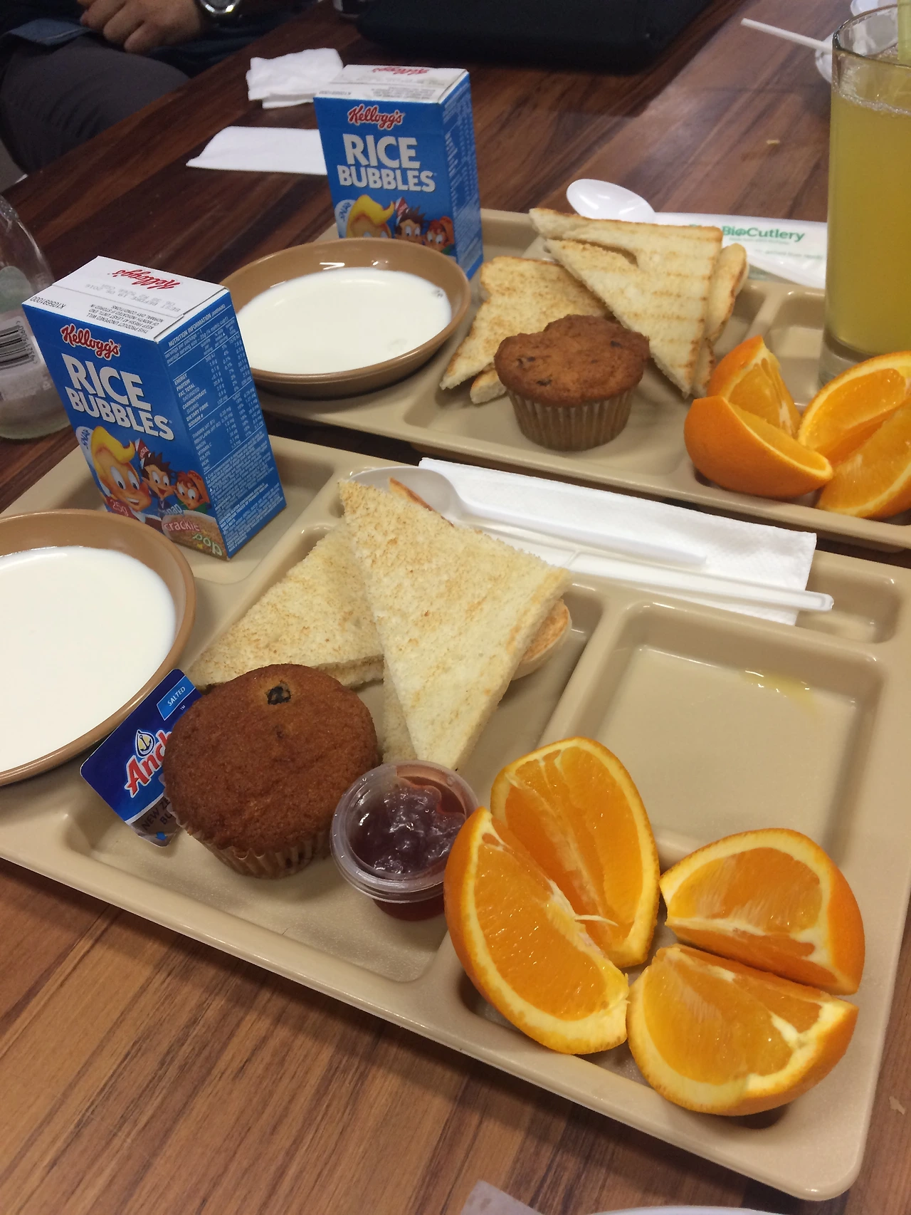 그런 면에서 과일을 제외하고 맛이 예상 가능한 가공 식품으로 가득한 피지 공항에서의 식사는 비교적 현명했다. 시리얼, 우유, 오렌지, 머핀, 커피, 딸기잼, 버터, 구운 식빵으로 이뤄진 구성이었다. 첫 비행기라 공항 안에 거의 문 연 식당이 없었기 때문에 우리는 배를 곯지 않고 먹을 수 있다는 것만으로도 감사했다.