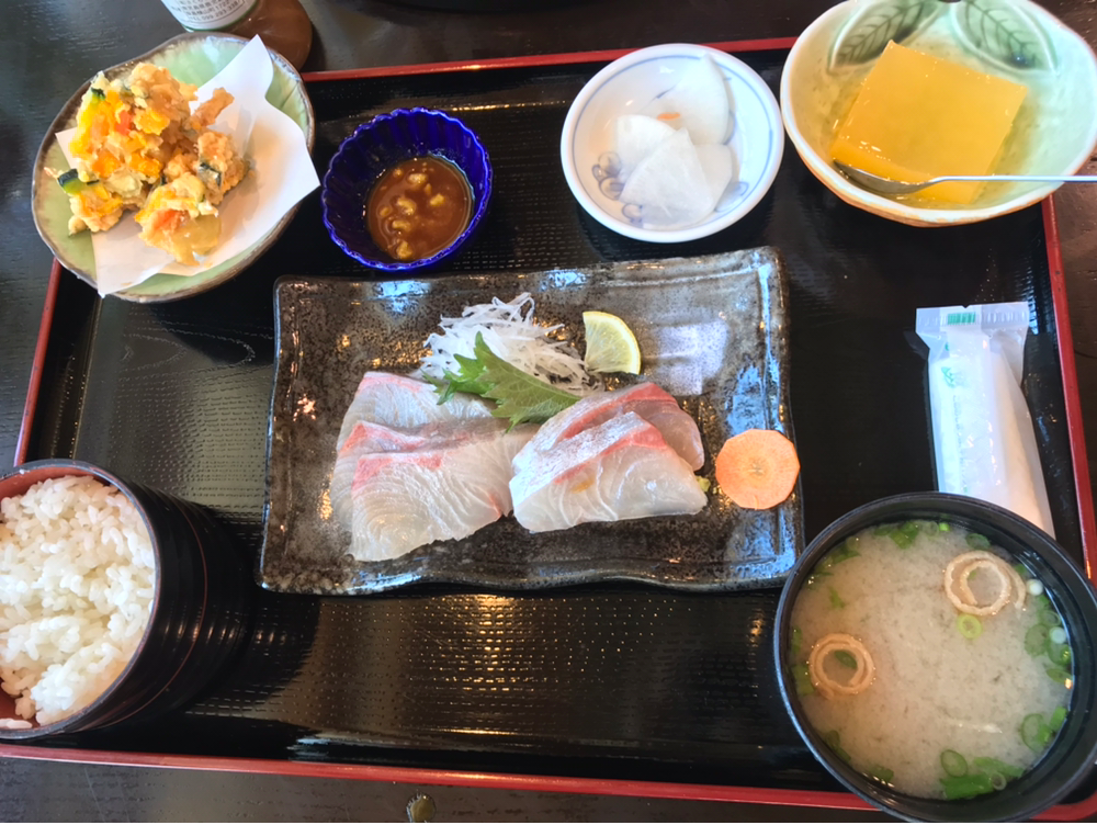 아빠는 잿방어 회와 흑돼지 된장조림이 들어간 정식, 엄마는 잿방어 회정식, 나는 사쿠라지마 코미깡(작은귤)로 반죽한 면이 들어간 우동을 주문했다. 잿방어, 사쿠라지마 코미깡 모두 가고시마의 대표 특산물인데 마침 제철인 재료들이었다. 겨울에 가고시마에 오길 잘했다는 생각이 들었다. 자판기에 돈을 넣고 주문서가 나오면 주방 앞 직원 분께 드린다. 직원은 우리의 자리를 확인하고 메뉴가 나오면 그 자리까지 가져다주신다.