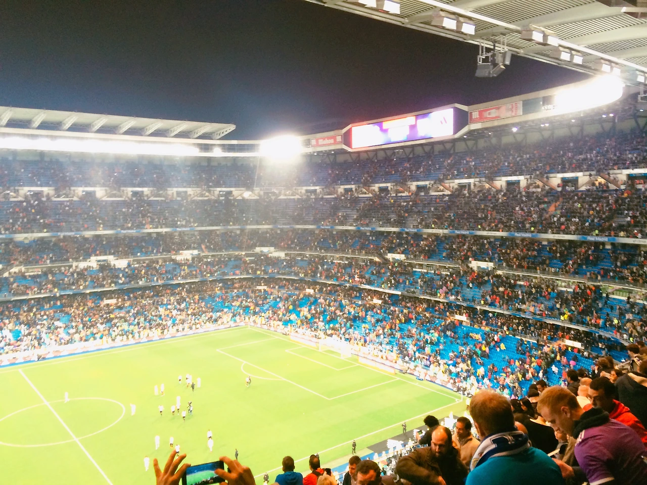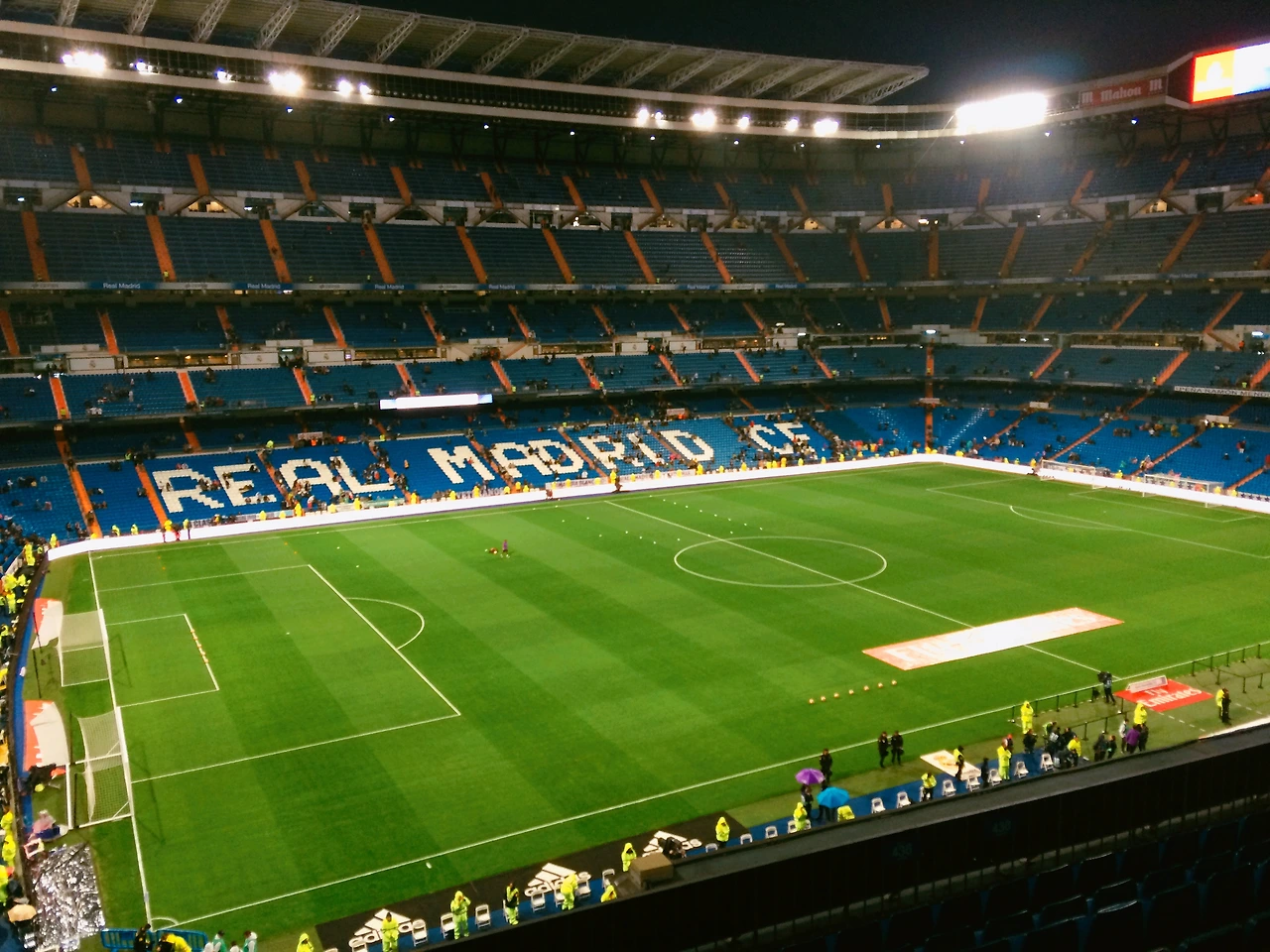 안으로 들어가니 내가 VR 세계에 와 있는 건 아닐까?라는 착각에 빠질 듯 장대한 광경이 펼쳐진다. 주말 새벽이면 졸린 눈을 부여잡고 지켜보았던 그곳. 내 생애 쌩눈으로 볼 수 있을까? 상상도 못 하였던 그곳! 그저 와~~ 세상에~~ 연신 감탄사가 방언처럼 터져 나온다. 가난한 여행자는 겨우 80유로짜리 3층 구석의 자리를 얻었을 뿐인데 한눈에 경기장이다 들어온다. (물론 선수들의 얼굴은 코딱지만 하게 보이지만) 주변을 둘러보니 우리 구역엔 외국인이라고는 나와 일행뿐. 게다가 여자는 아빠 따라온 여자 꼬맹이 빼곤 없다. 분위기를 보아하니 뜨내기손님들도 아니다. 자리에 착석하기 까지서로 악수며 인사를 하기 바쁘다. 아마도 연간 회원권을 가진 축덕들 이리라. 그러다 보니 이 낯선 이방인의 등장에 신기해하는 눈빛이 가득하다. 털북숭이 마드리드 아저씨들의 시선을 한 몸에 받으며 착석했다.