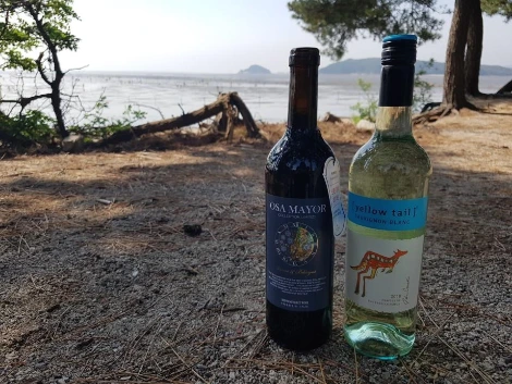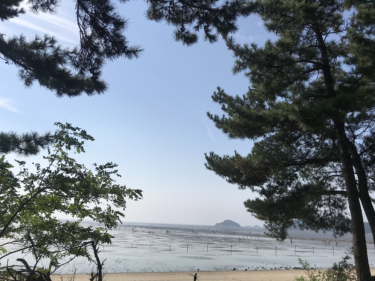 다음 코스는 간단했다. 공항을 한 바퀴 둘러본 후 자기 부상 열차를 타고 용유역에 내려 바닷가를 좀 걷고, 해물칼국수를 먹었다. 다시 좀 걸어 소화를 시킨 후 마시안 해변의 해송 그늘 아래 돗자리를 편 후 와인을 마셨다. 바닷가에서 음악을 작게 틀어 놓고 한가롭게 낮술을 하며 수다를 떨었다. 와인은 단 두 병뿐이라 일찌감치 술은 떨어졌지만 해가 서해 바다로 떨어지기 직전까지 우리의 수다는 길게 이어졌다.