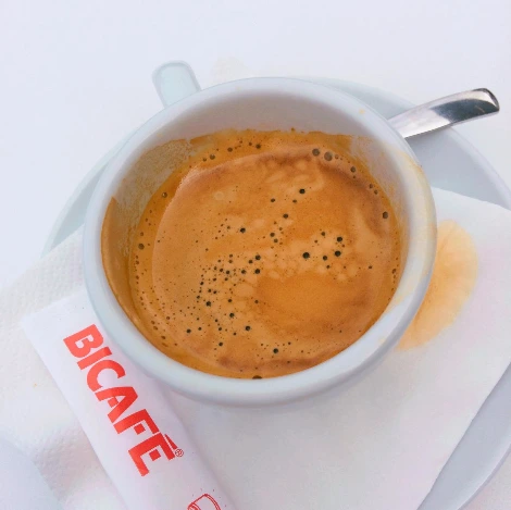 근처의 카페를 찾아 구시가지 반대쪽을 두리번 거리니 보이는 거라곤 온통 와이너리 간판뿐이다. 포기할 찰나, 다리의 끝에 온 사방이 통유리로 된 세련된 건물이 보인다. 케이블카를 타고 내리는 사람들이 오가는 건물이다. 술을 팔 거 같은데 아직 해가 지지 않았으니 커피도 팔겠지 싶어 무작정 들어가 테라스 쪽에 자리를 잡았다. 도우강을 가로지르는 다리 넘어 포르투 구시가지가 그림처럼 펼쳐지는 명당! 이 정도라면 커피가 3년 묵은 양말 빤 물맛이라도 달게 마실 수 있다.