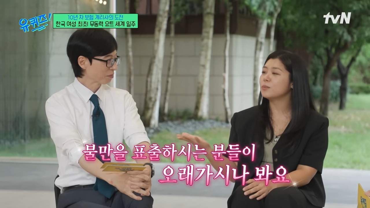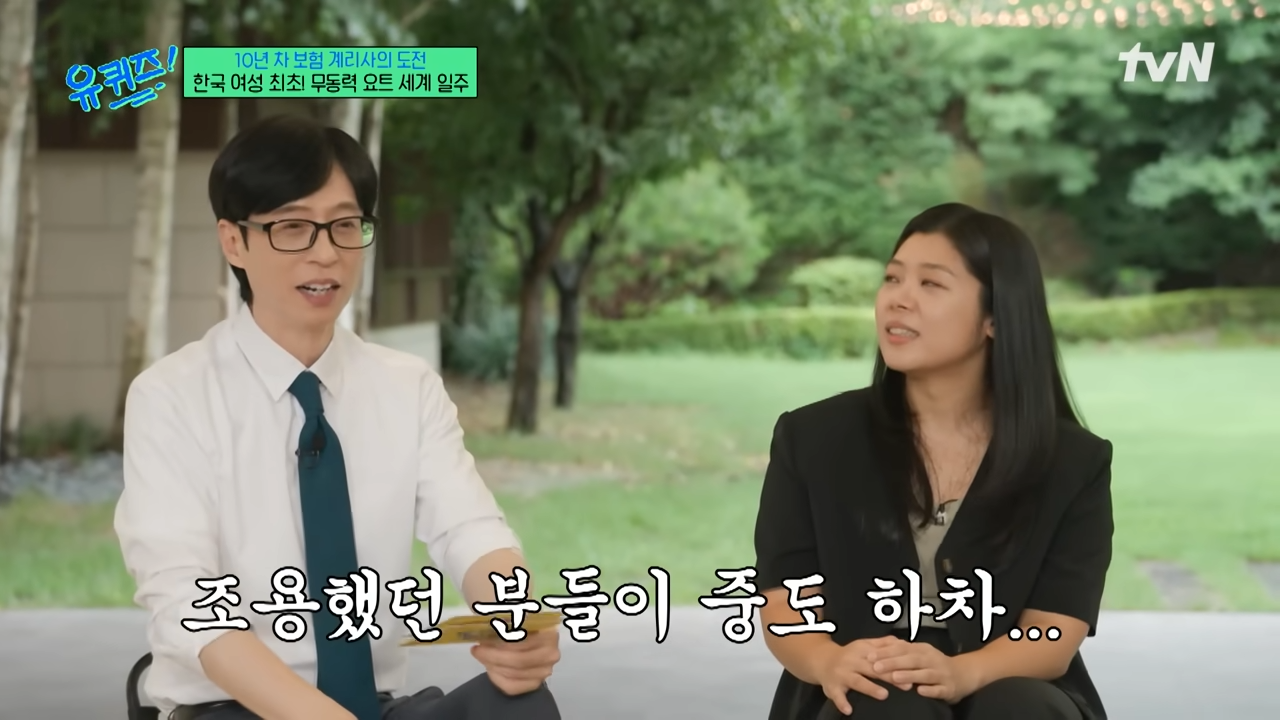 밥 친구 삼아 틀어놓은 TV 토크쇼의 주인공은 한국 여성 최초로 무동력 요트 세계 일주에 성공한 사람이었다. 싱가포르에서 보험 계리사로 일하다가 11개월간 바람과 돛만으로 지구 두 바퀴에 가까운 거리를 일주하는 험난한 레이스에 도전했다. 영국 포츠머스항을 출발해 330일 동안 세계 바다를 돌고 돌아 다시 복귀하는 여정이었다.