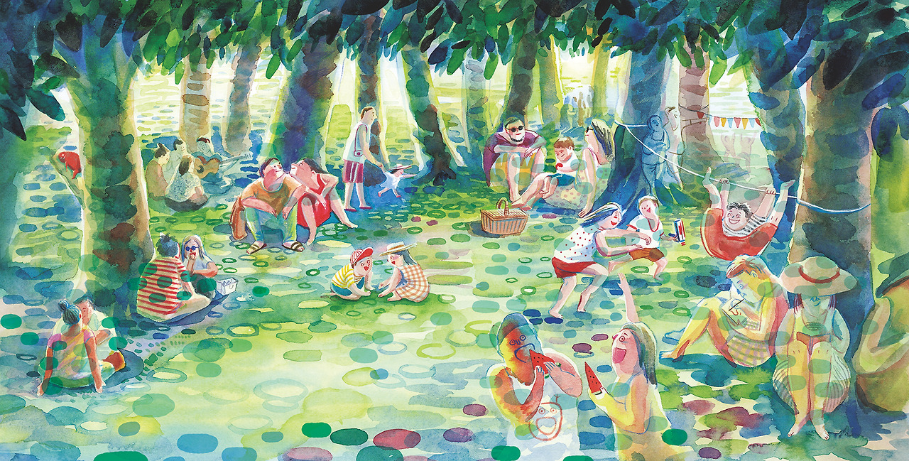 하지만 초반부터 어려움을 겪었다. 글솜씨가 좋지 않았기에 여름이라는 계절에 대한 몇 가지 단상만을 끄적거린 채 세 계절을 흘려보냈다. 그러다 다시금 거울을 들여다보는 심정으로 여름을 바라보기 시작했다. 시도 때도 없이 출몰하는 불안과 초조 혹은 막막함 속에서 사실 웃고 즐길 수 있는 일상과 일 그리고 친구나 가족이 있다는 순간의 안도감이 들었다. 그 순간들이 바로 내가 공원에서 보고 느끼고 그렸던 여름의 풍경이었고 내가 쓴 문장 속에 담긴 실 가닥 같은 메아리였다.